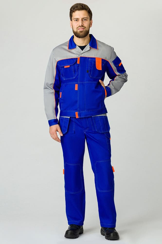 Костюм Союз-Профессионал-2 (тк.Балтекс,240) п/к, васильковый/св.серый/оранжевый