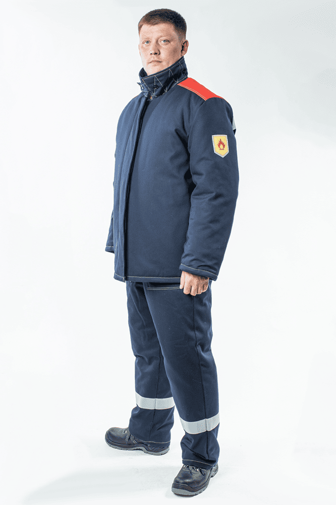 Внешние швы прошиты высокопрочной термостойкой арамидной нитью контрастного цвета, пуговицы термостойкие аминопластовые, огнестойкая СВЛ лента.