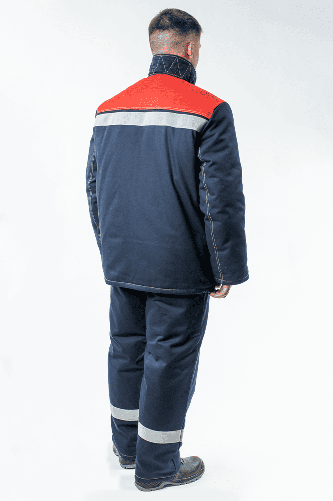 Костюм состоит из куртки и брюк с притачной теплозащитной подкладкой.