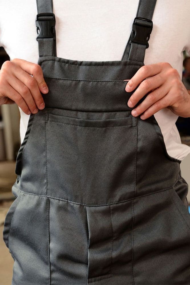 - выполнен в темно-сером цвете и имеет отличную посадку по фигуре за счет эластичного пояса, лямок с резинкам и фастексами