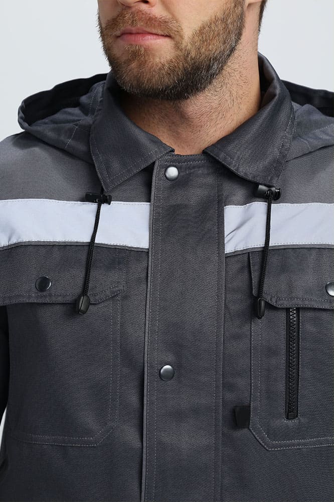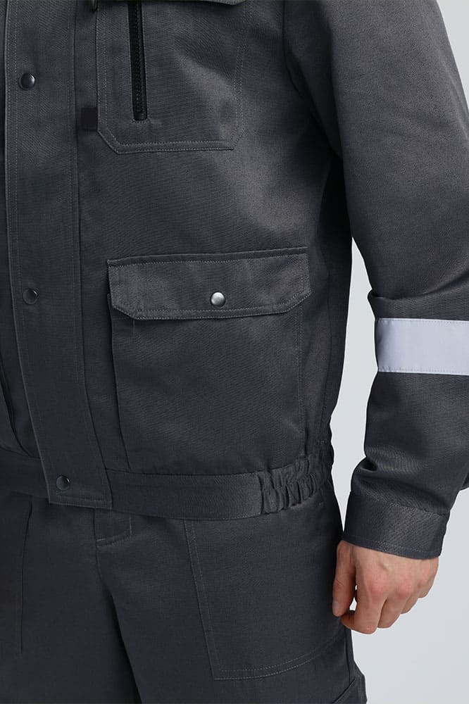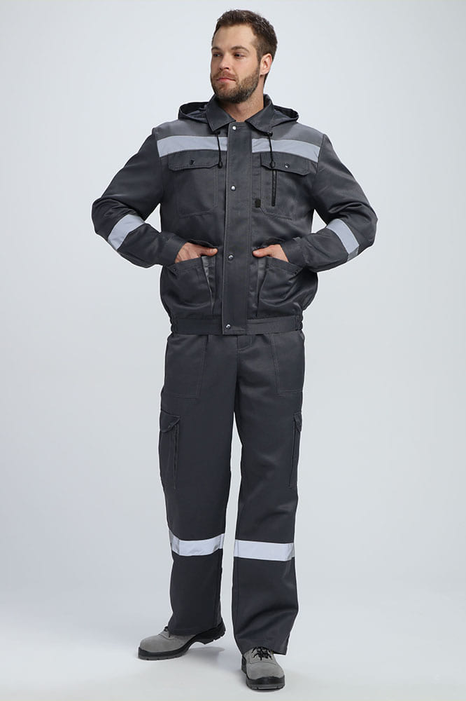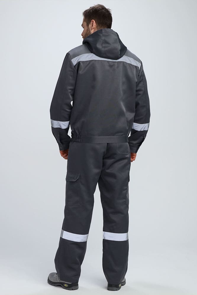 Рабочий костюм мужской «Титан-2 СОП» состоит из двух элементов: мужская рабочая куртка + полукомбинезон рабочий. Спецодежда мужская оснащена широкими светоотражающими полосами 50 мм, благодаря чему подходит для работы в местах с плохим освещением. Костюм изготовлен в соответствии с ГОСТ из плотного материала с водоотталкивающей пропиткой. Укороченная куртка рабочая на молнии удобна в работе и отличается длительным периодом эксплуатации. Защиту от осадков и ветра обеспечивают съемный капюшон с регулировкой по лицу и ветрозащитная планка, застегивающаяся на кнопки. Рабочий полукомбинезон на бретелях с регулировкой по длине и поясом на резинке отлично садится по фигуре. Униформа дополняется удобными объемными карманами, что помогает сохранять в целости записи и расходники.