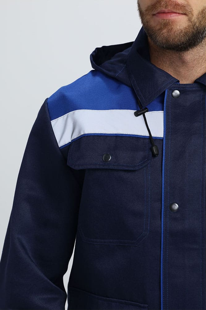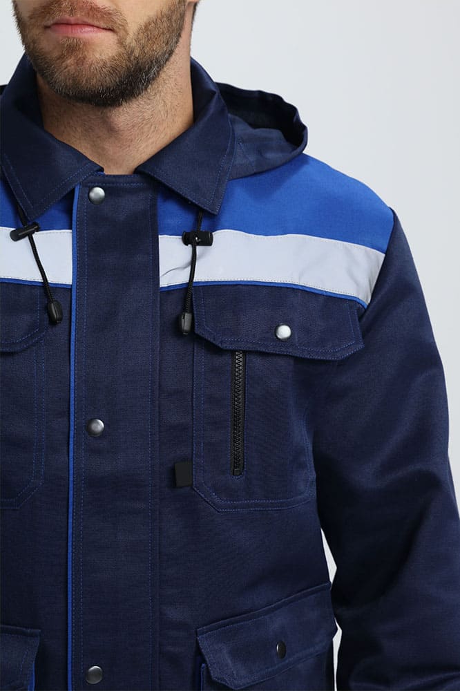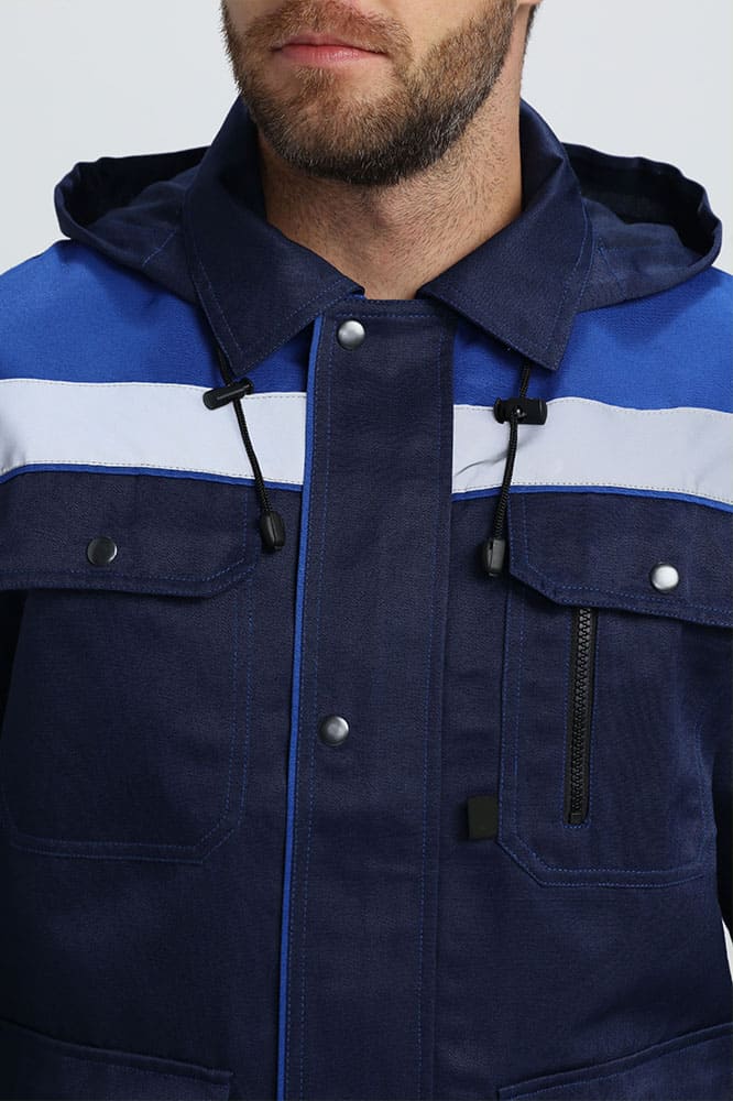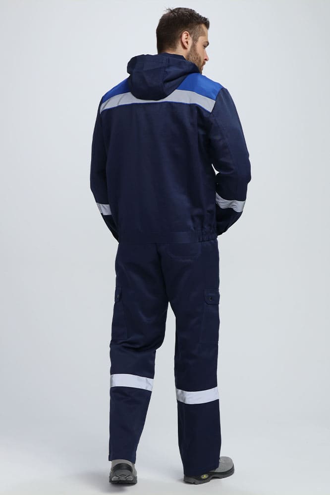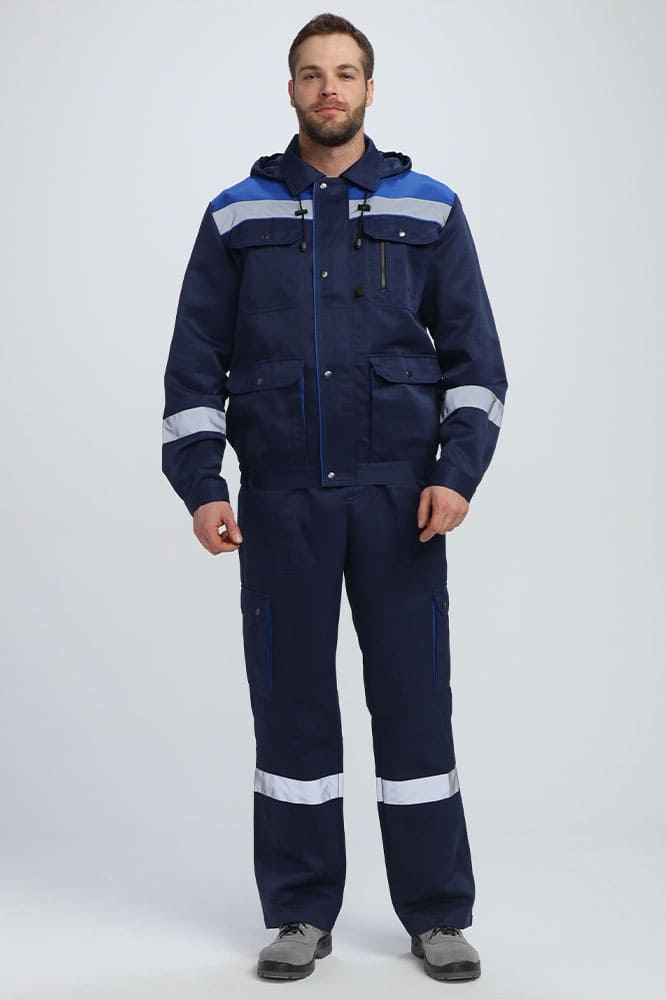 Рабочий костюм мужской «Титан-2 СОП» состоит из двух элементов: мужская рабочая куртка + полукомбинезон рабочий. Спецодежда мужская оснащена широкими светоотражающими полосами 50 мм, благодаря чему подходит для работы в местах с плохим освещением. Костюм изготовлен в соответствии с ГОСТ из плотного материала с водоотталкивающей пропиткой. Укороченная куртка рабочая на молнии удобна в работе и отличается длительным периодом эксплуатации. Защиту от осадков и ветра обеспечивают съемный капюшон с регулировкой по лицу и ветрозащитная планка, застегивающаяся на кнопки. Рабочий полукомбинезон на бретелях с регулировкой по длине и поясом на резинке отлично садится по фигуре. Униформа дополняется удобными объемными карманами, что помогает сохранять в целости записи и расходники.