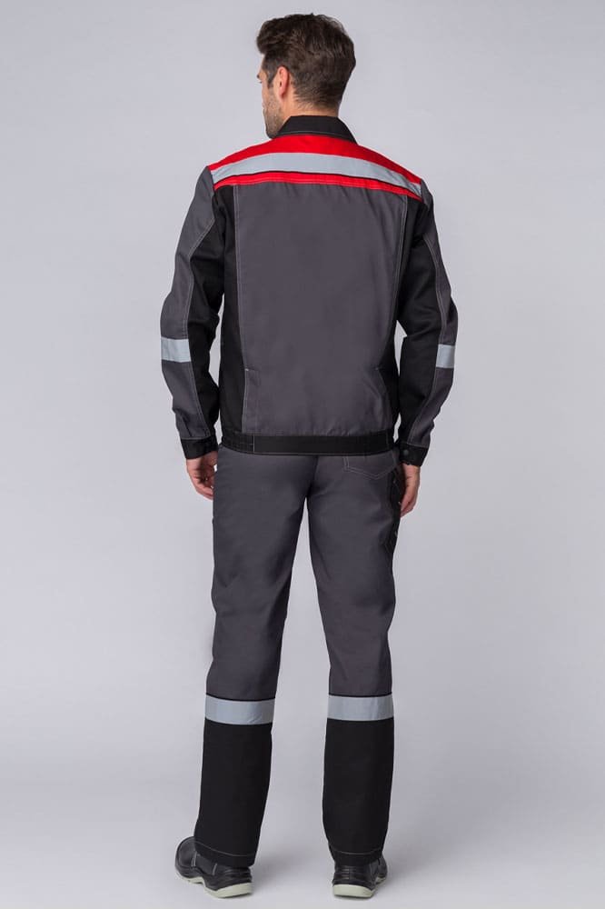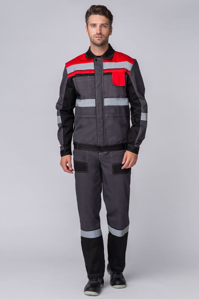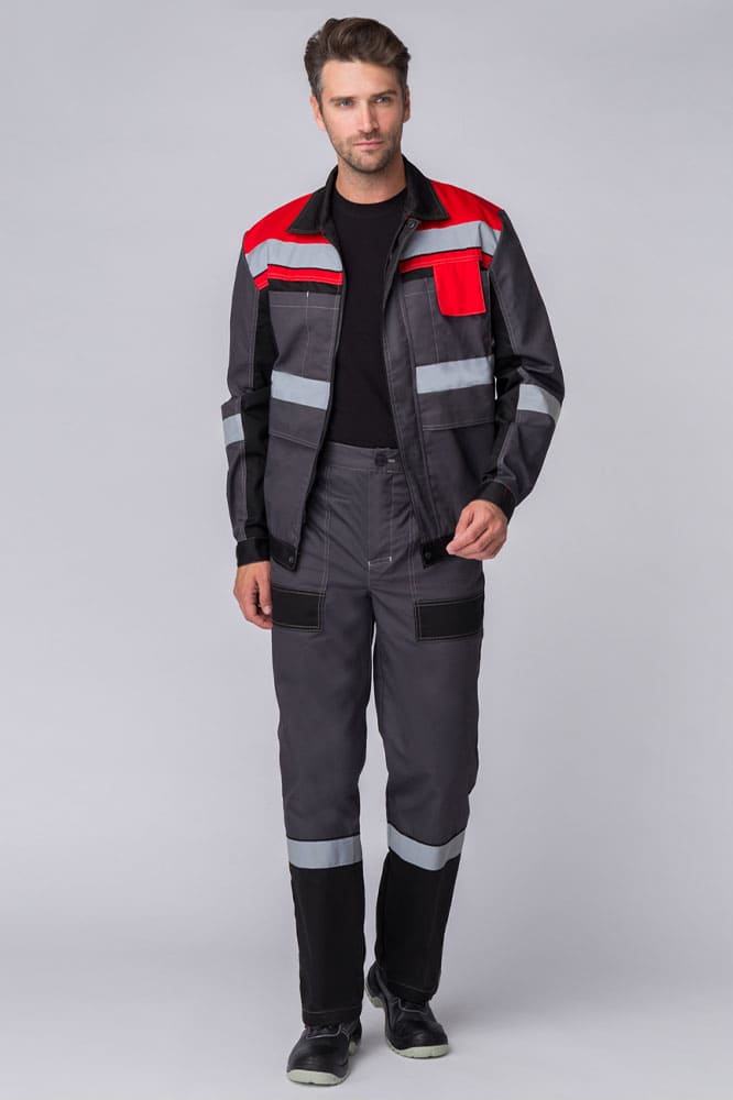 Униформа для персонала изготовлена в соответствии с ГОСТ из ткани повышенной плотности 240 гр. Надежно защищает от загрязнений, отличается повышенной прочностью и устойчивостью к истиранию. Благодаря световозвращающим полосам на куртке и брюках костюм рабочий мужской подходит для работы в местах с плохим освещением и в темное время суток. Укороченная рабочая куртка с поясом на резинке оснащена множеством функциональных карманов, в том числе закрывающимся на липучку карманом для средств связи. Куртка на молнии с расширительными складками по спине не сковывает движения и очень удобна. Рабочие брюки с карманами могут фиксироваться ремнем. Боковые карманы предназначены для размещения инструментов, усилены дополнительным слоем ткани против проколов и порезов.