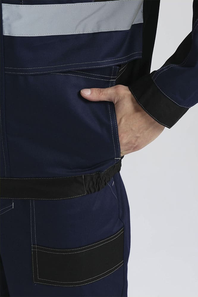 Костюм рабочий «Виват-2 Премиум» состоит из двух предметов: куртка рабочая мужская и полукомбинезон рабочий. Спецодежда изготовлена в соответствии с ГОСТ из ткани повышенной плотности 240 гр., устойчива к механическим повреждениям, отличается длительным периодом эксплуатации. Укороченная рабочая куртка с поясом на резинке и скрытой молнией отлично сидит по фигуре. Оснащена множеством функциональных карманов, в том числе закрывающимся на липучку карманом для средств связи. Для работы в местах с плохим освещением предусмотрены световозвращающие полосы. Полукомбинезон снабжен накладными боковыми карманами, усиленными дополнительным слоем ткани. Данная особенность помогает избежать порезов при размещении в карманах острых рабочих инструментов. Благодаря эластичной ленте в талии и бретелях рабочий комбинезон не сковывает движения, удобен в разных рабочих ситуациях. Для усиления шагового шва в п/к добавлена ластовица.