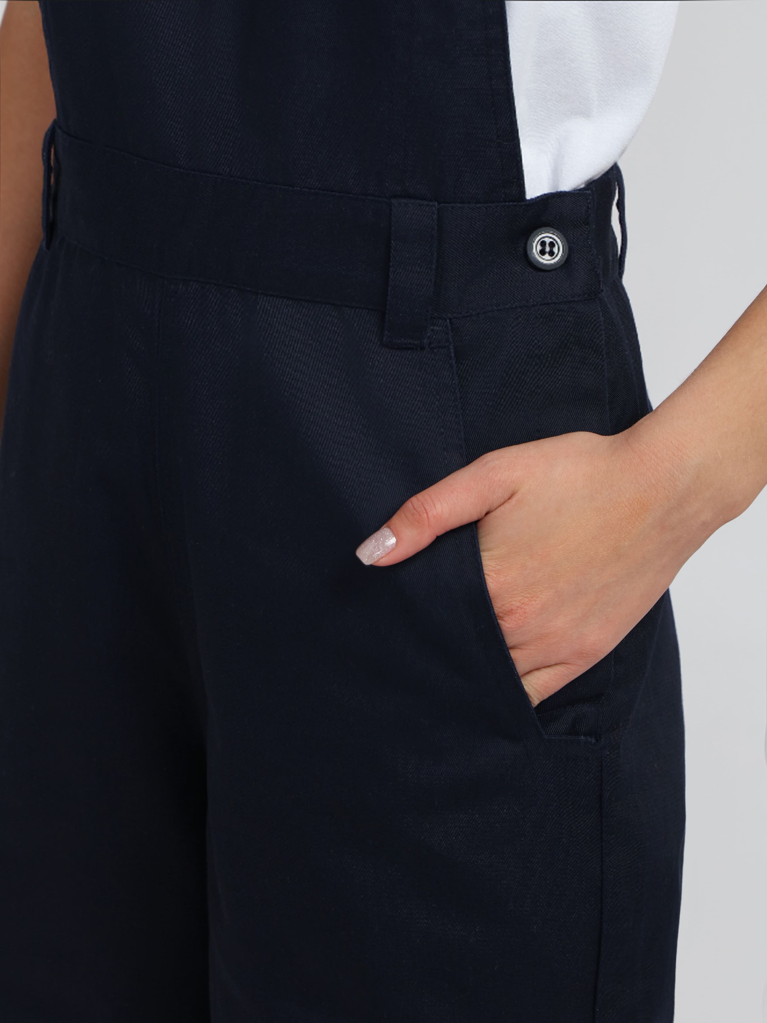 - Удобная регулировка посадки: пояс с внутренними боковыми резинками и шестью шлевками для идеальной посадки по фигуре