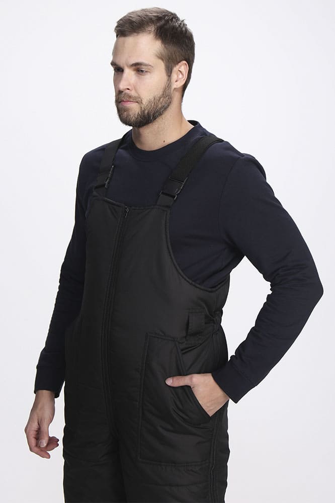 - передняя часть полукомбинезона с накладными карманами с косым входом