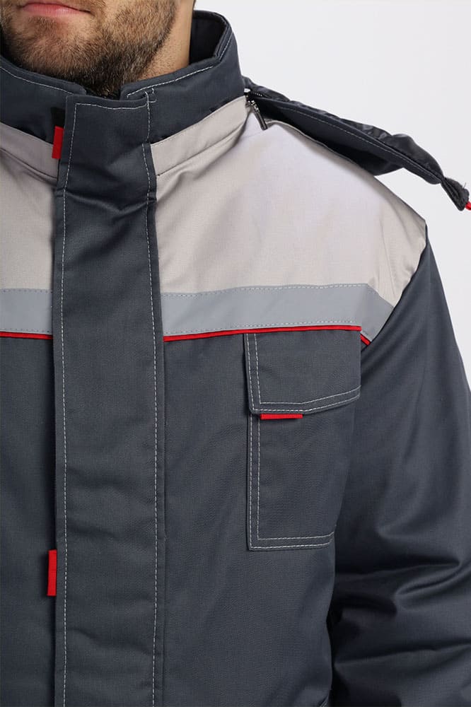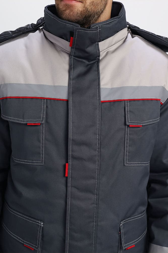 - центральная застежка на молнию с клапаном ветрозащитным на ленте контакт