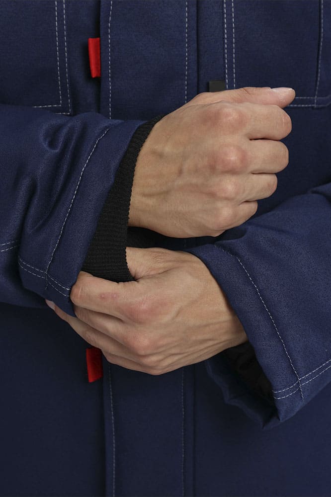 - полочки с верхними накладными карманами и с утеплёнными клапанами, застёгивающиеся на ленту «контакт» и патой из контрастной ткани