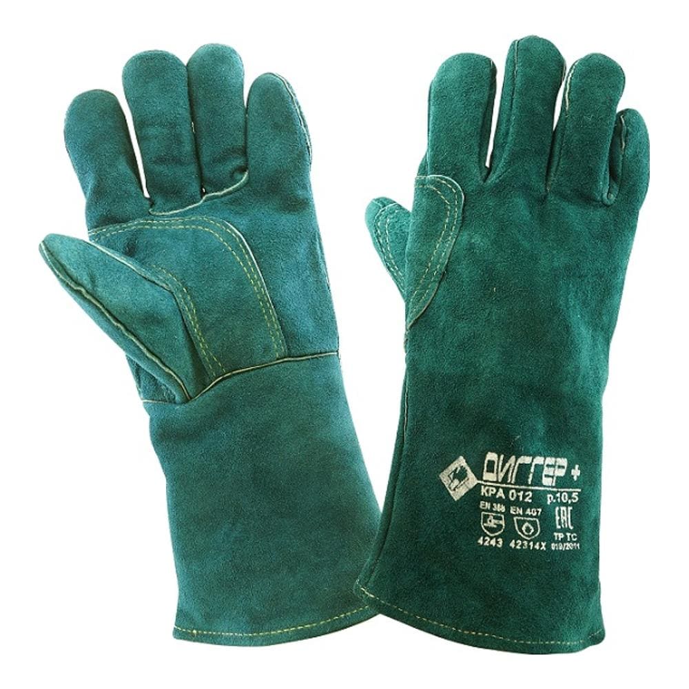 - краги ДИГГЕР+ из цельного спилка, пятипалые, с подкладкой из брезента и хлопка, длиной 350 мм (+10/-5мм)