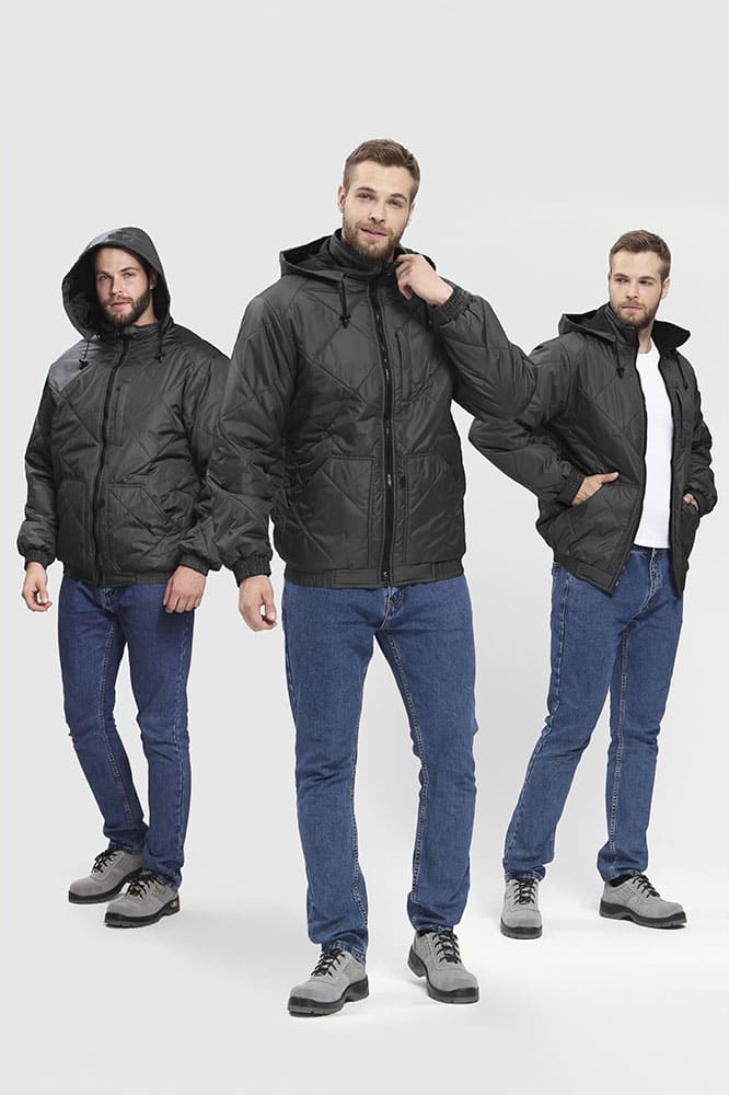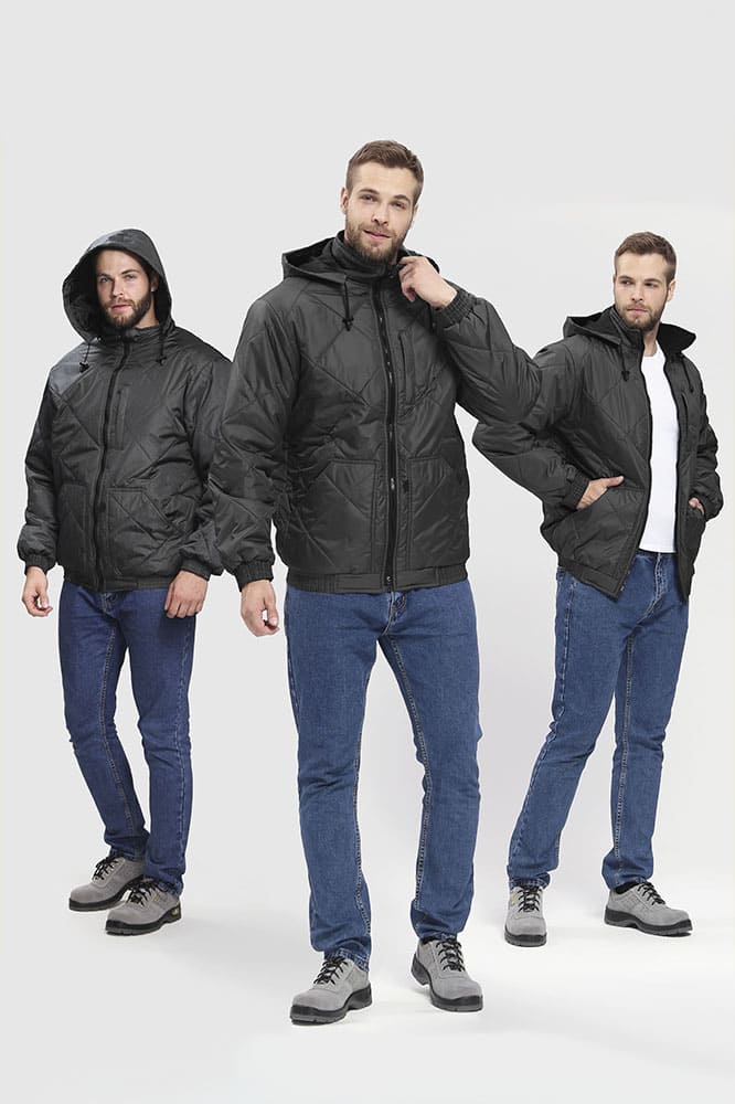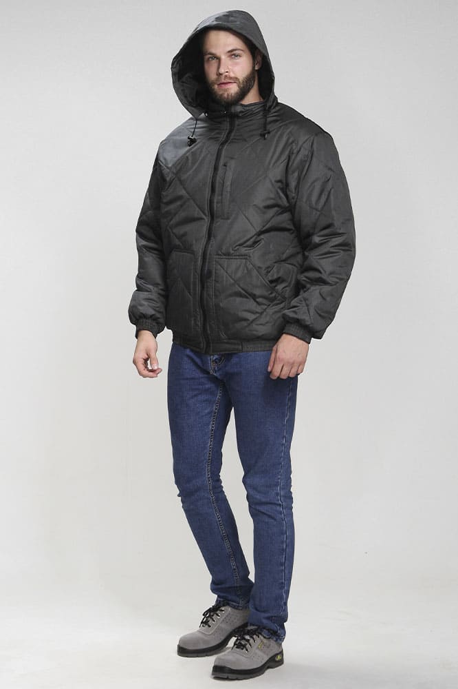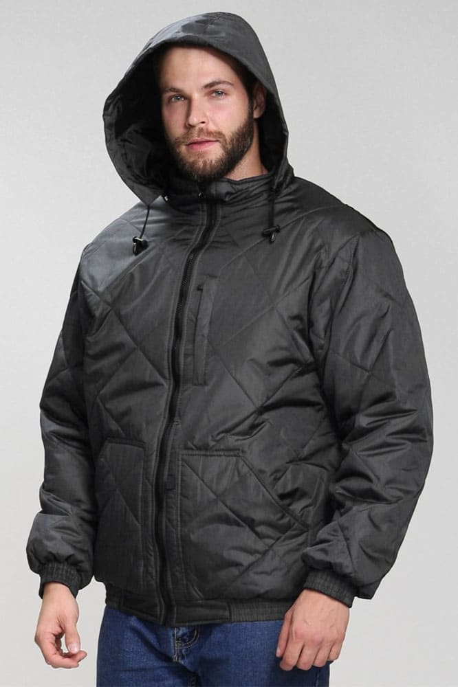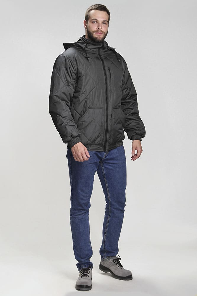Куртка мужская демисезонная «Бомбер Люкс» зарекомендовала себя как в рабочей, так и повседневной деятельности. Стеганная куртка на подкладке из флиса отличается прекрасным внешним видом и стильным современным фасоном. Благодаря плотной ткани с влагоотталкивающей пропиткой и утеплителю синтепон куртка великолепно защищает от холода и осадков. Мужская короткая куртка с капюшоном застегивается на молнию и надежно закрывает шею от ветра с помощью воротника-стойки. При желании, капюшон можно отстегнуть или закрепить фиксаторами по овалу лица. Нижние утепленные стеганые карманы согревают руки в холодное время года, а верхний нагрудный карман на молнии подходит для хранения нужных мелочей. Дополнительно присутствует внутренний карман на липучке. Благодаря укороченной конструкции на поясе-резинке куртка отлично подходит водителям транспортных средств.