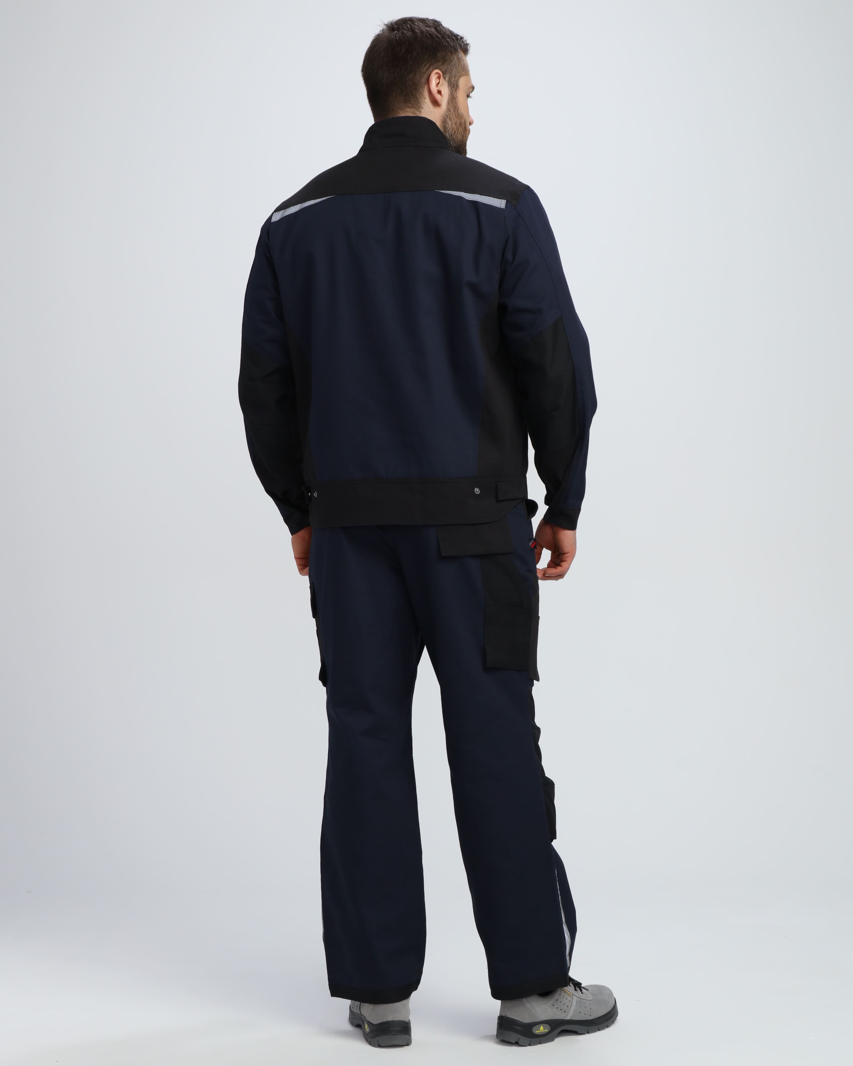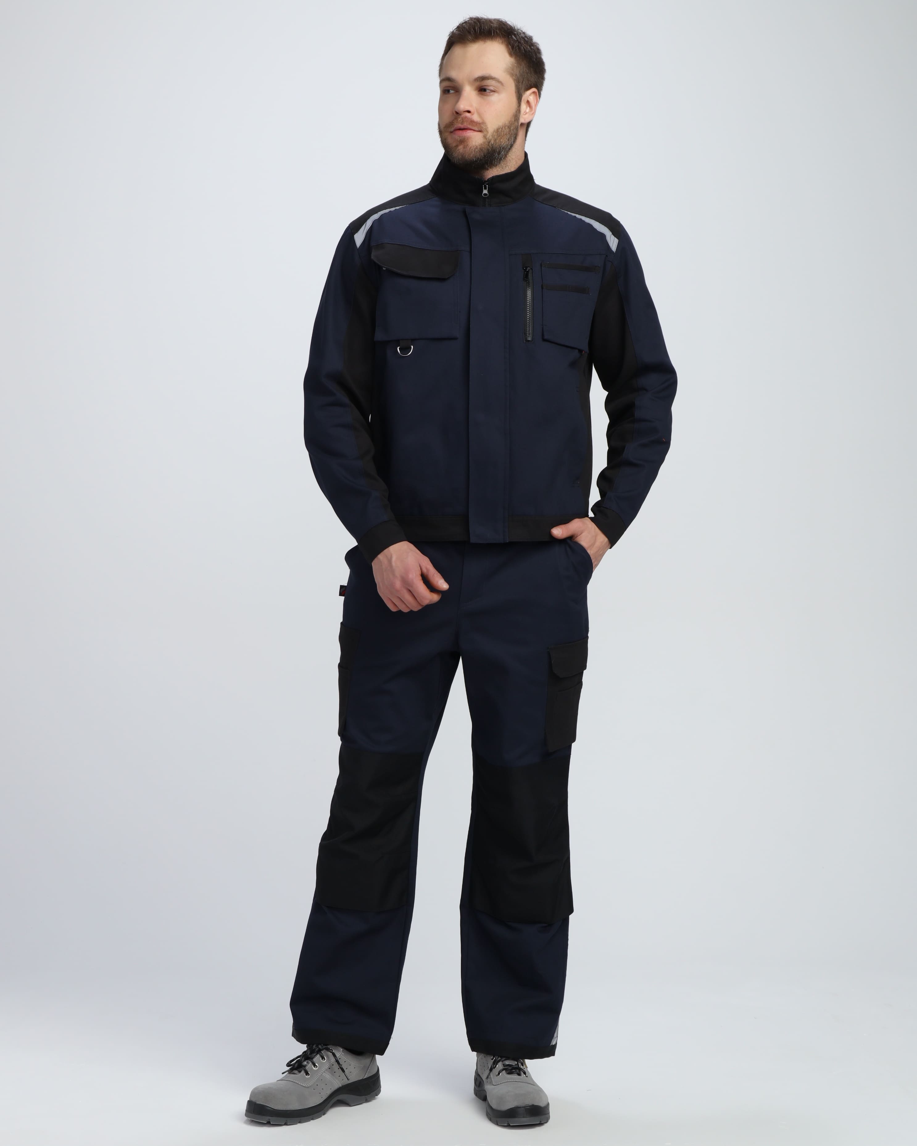 Куртка может быть комплектована с брюками и полукомбинезоном "Милан" для создания полноценного рабочего костюма, обеспечивающего комплексную защиту и унифицированный профессиональный вид рабочей команды.