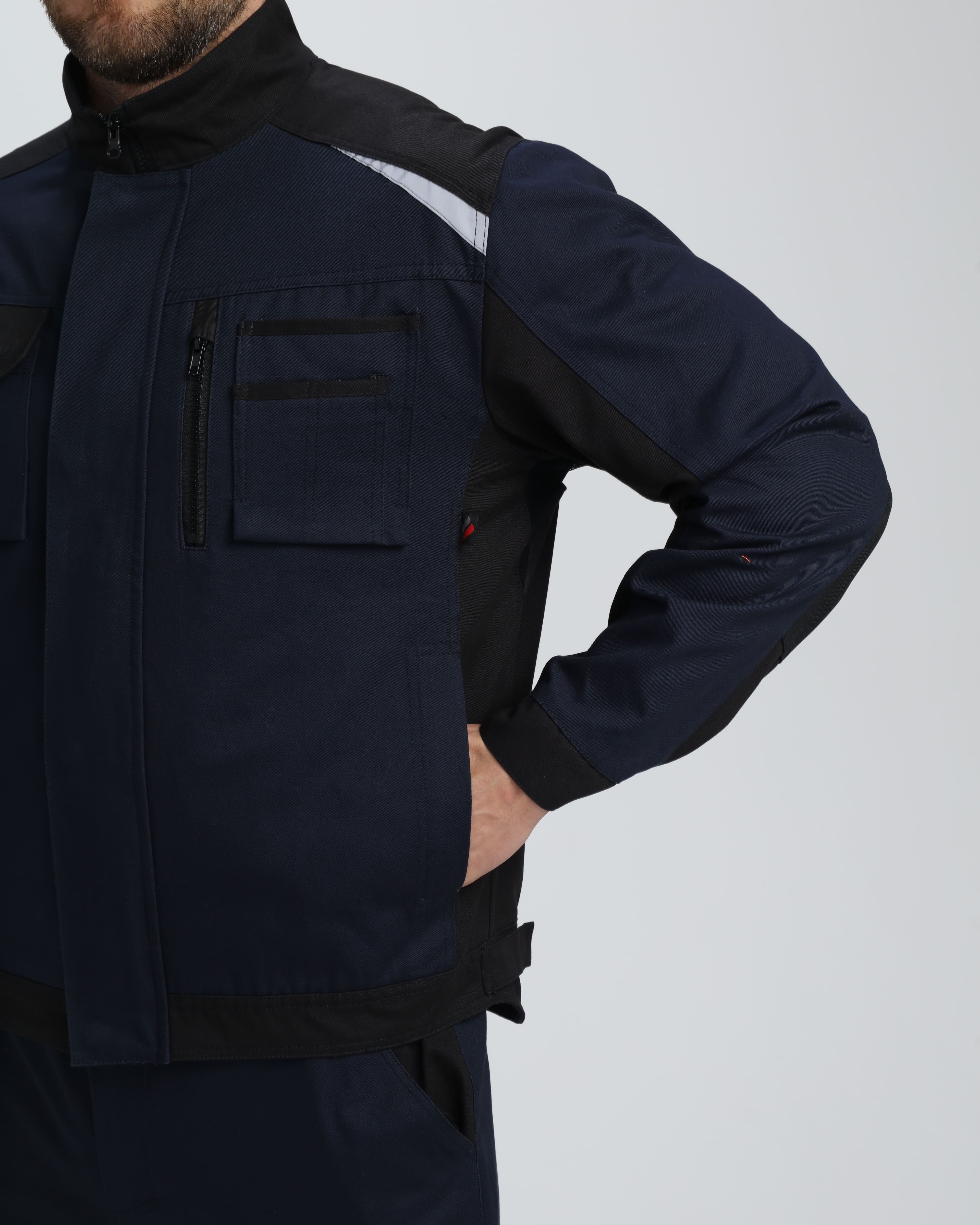 предусмотрены специальные вентиляционные отверстия, которые обеспечивают оптимальный воздухообмен и предотвращают перегрев тела во время активной работы с фигурными вставками из светоотражающей полосы для улучшенной видимости функциональные карманы, включая накладной нагрудный и дополнительные карманы для удобства хранения инструментов и личных предметов.