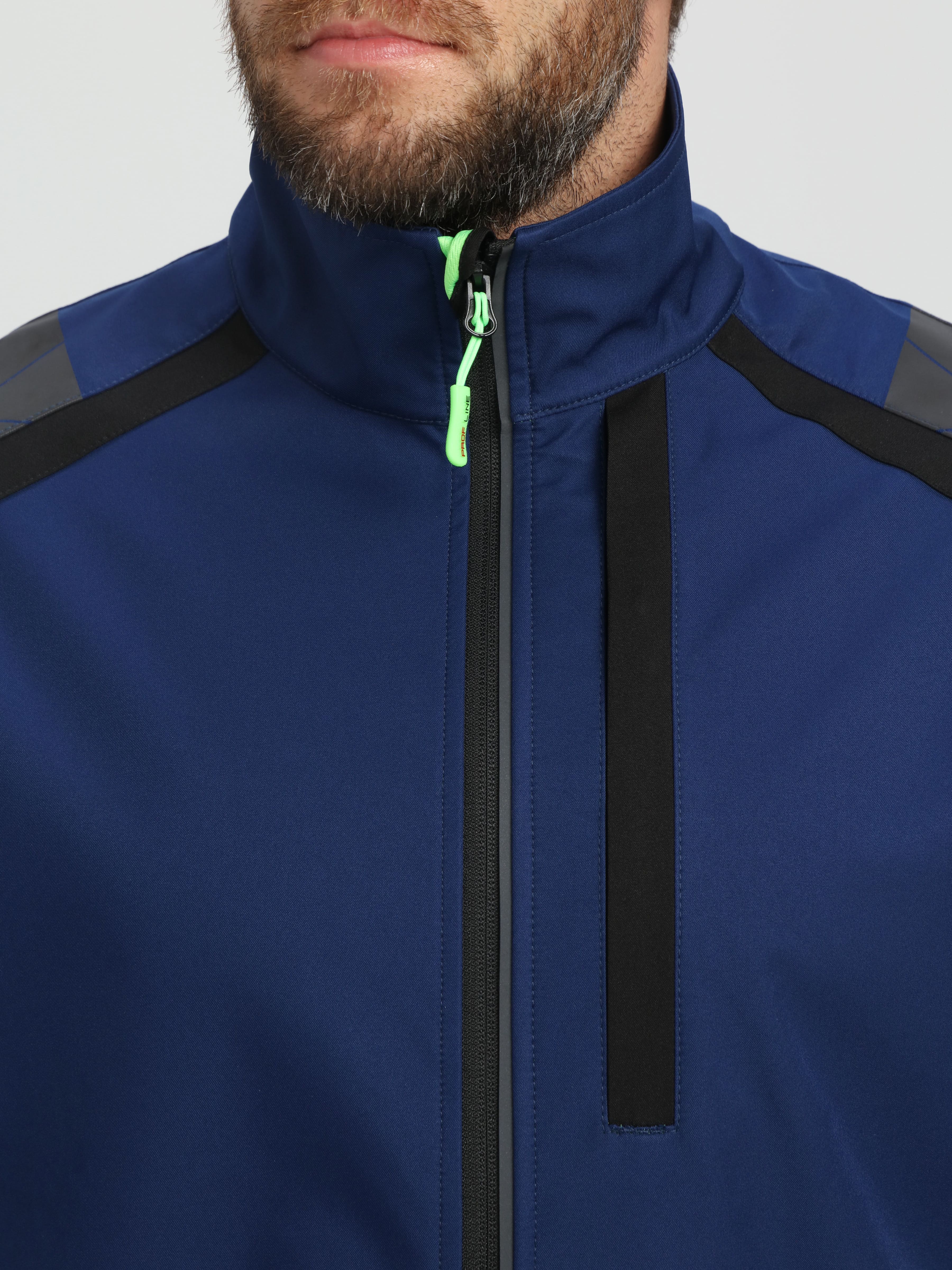- с центральной застежкой молнией и светоотражающей вставкой по левой стороне
