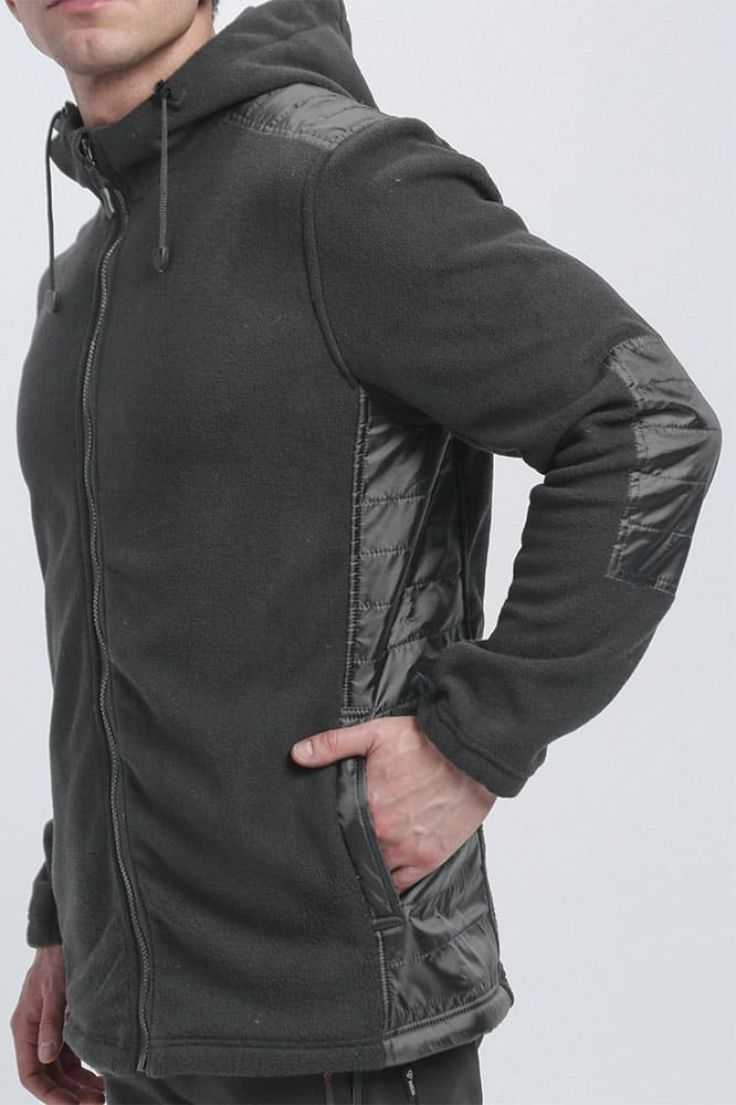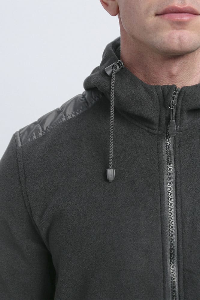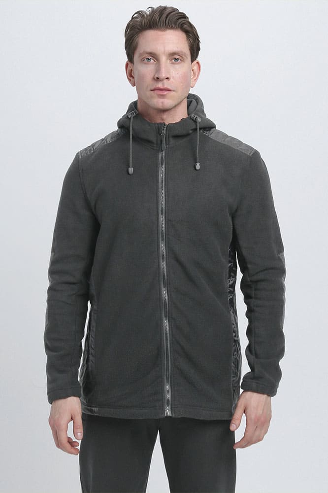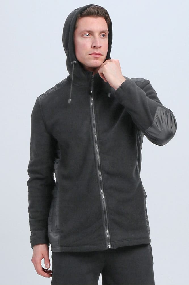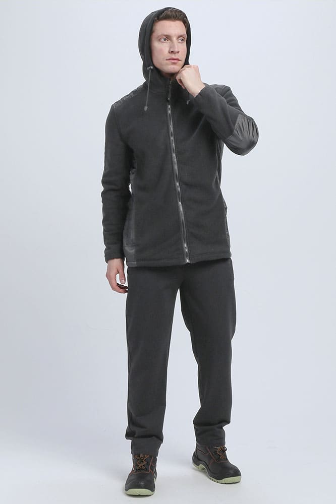 - из флисового полотна прямого силуэта с капюшоном, с центральной застежкой на молнию. По верху молнии с защитной планкой, с перегибом