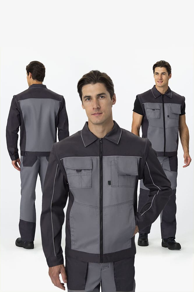 Куртка "Лидер" идеально комплектуется с брюками и полукомбинезоном "Лидер", создавая полноценный костюм, который обеспечивает комплексную защиту и единый стиль для профессионалов различных сфер деятельности.