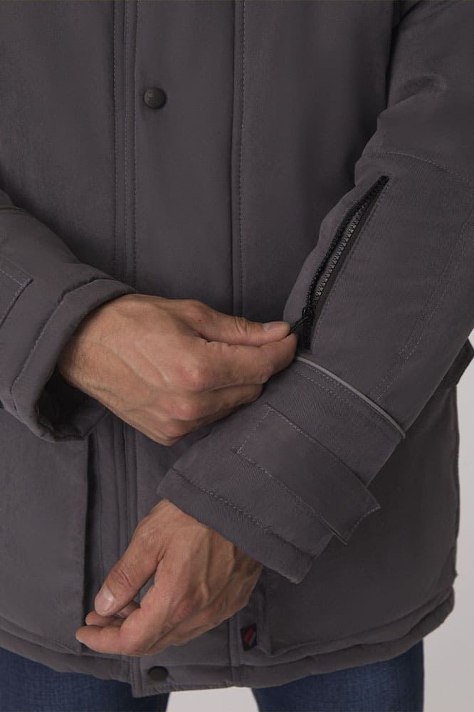 - центральная застежка на тесьму «молния» с двумя внешними утепленными ветрозащитными планками и одной внутренней