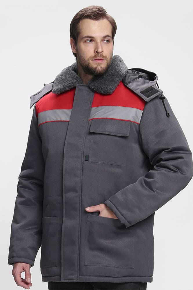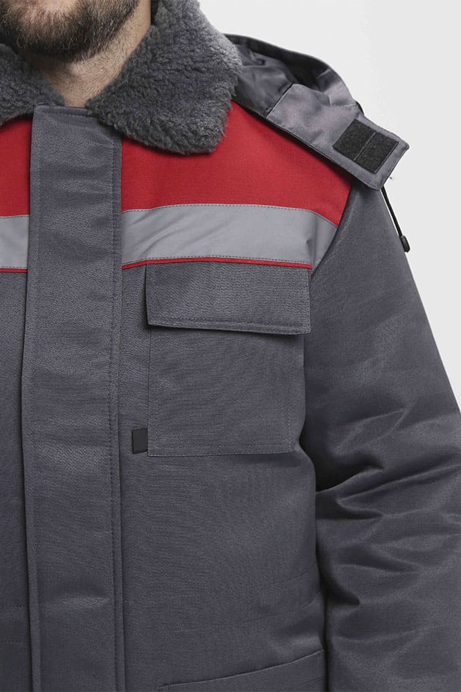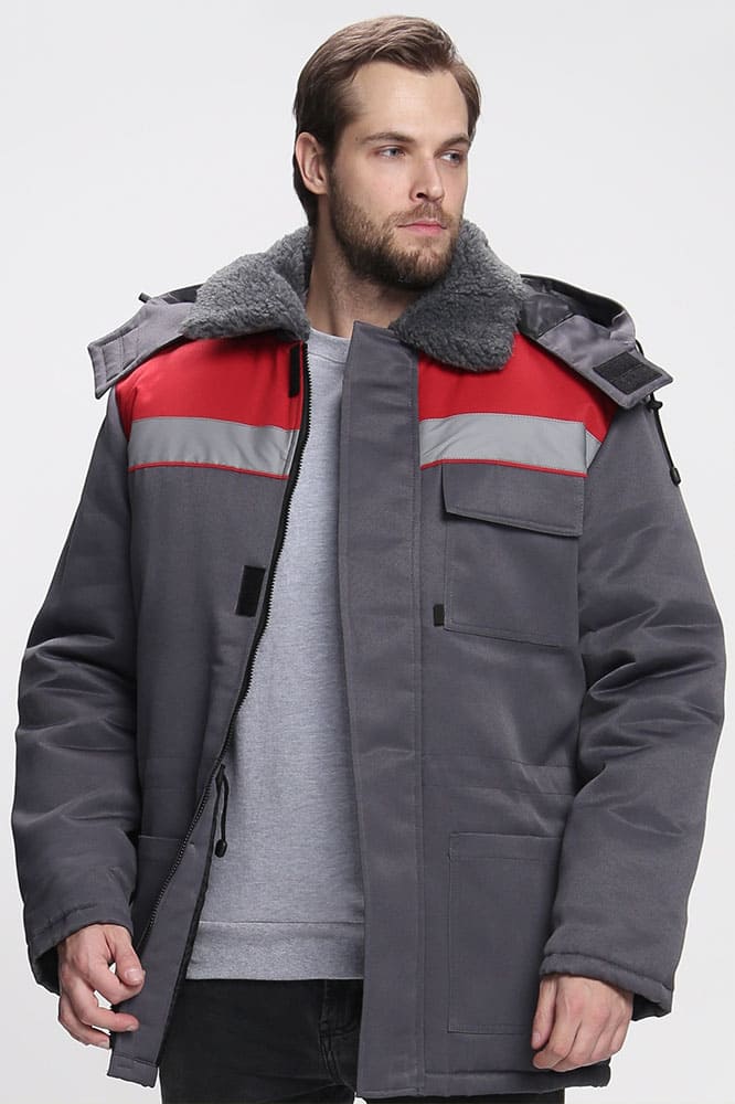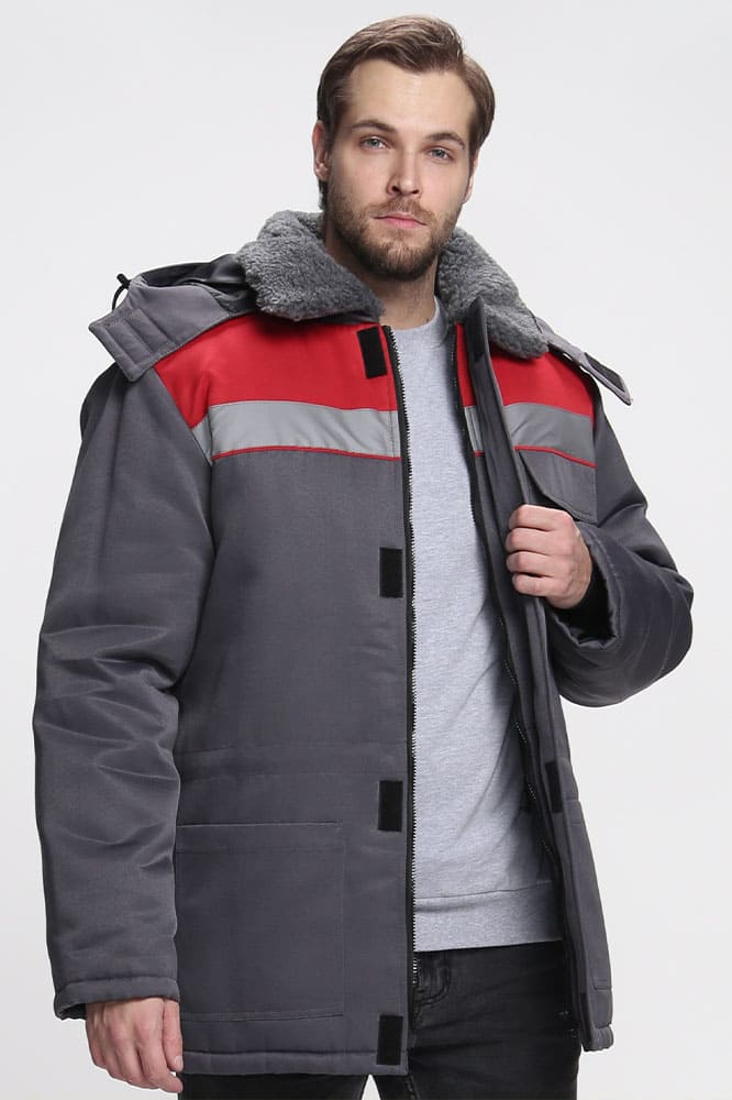 Куртка зимняя Бригада NEW (тк.Смесовая,210), т.серый/красный