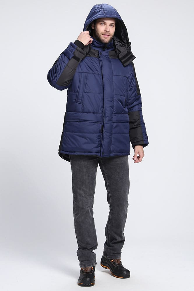 Мужская зимняя куртка «Европа» предназначена для комфортной работы при низких температурных режимах. Куртка рабочая зимняя замечательно садится по фигуре и не пропускает холод: низ куртки утягивается эластичным шнуром, на рукавах предусмотрены трикотажные манжеты, удлиненная фигурная спинка закрывает поясницу. Спецодежда производится из ткани с влагоотталкивающей пропиткой, благодаря чему отлично защищает от осадков. Плотный слой утеплителя и ветрозащитная планка на кнопках надежно сохраняют тепло, а воротник-стойка с нижним воротником из флиса укрывают шею. Объемный утепленный капюшон закрывает голову, регулируется шнуром по лицевому вырезу, может отстегиваться. Для хранения документов предусмотрен нагрудный карман на молнии формата А4, в дополнительных боковых карманах удобно хранить личные вещи.
