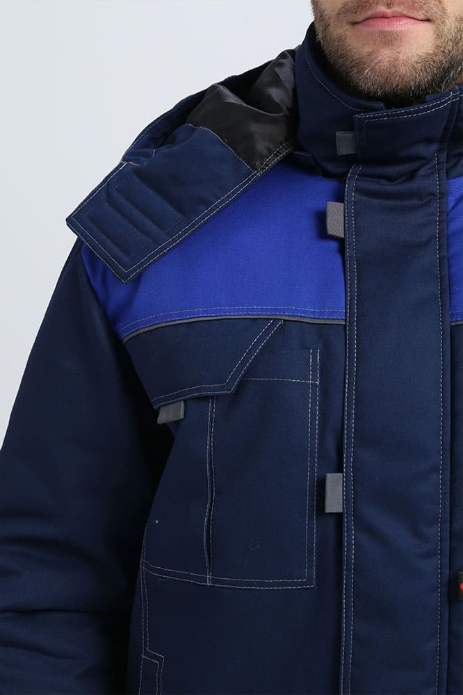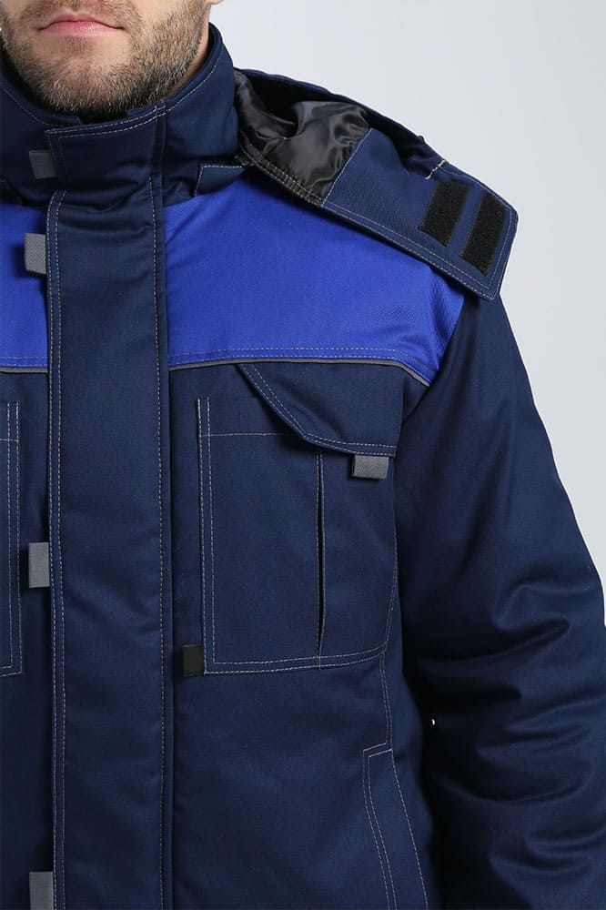 Куртка мужская зимняя «Фаворит NEW» изготовлена в соответствии с ГОСТ для работ в холодное время года. Куртка утепленная производится из ткани с влагоотталкивающей пропиткой, благодаря чему отлично защищает от осадков. Зимняя куртка на синтепоне надежно сохраняет тепло и обеспечивает комфорт во время длительных работ на холоде. С помощью объемного утепленного капюшона можно закрыть голову, воротник-стойка спасает шею от ветра, а застежка на молнию с планкой препятствует потере тепла. Ткань повышенной плотности и усиление на локтях обеспечивают куртке износостойкость и длительный период эксплуатации. В боковых и нагрудных карманах с клапанами на липучке удобно хранить личные вещи, внутренний потайной карман предназначен для важных записей и мелочей. Благодаря укороченной конструкции на поясе-резинке отлично подходит водителям транспортных средств.