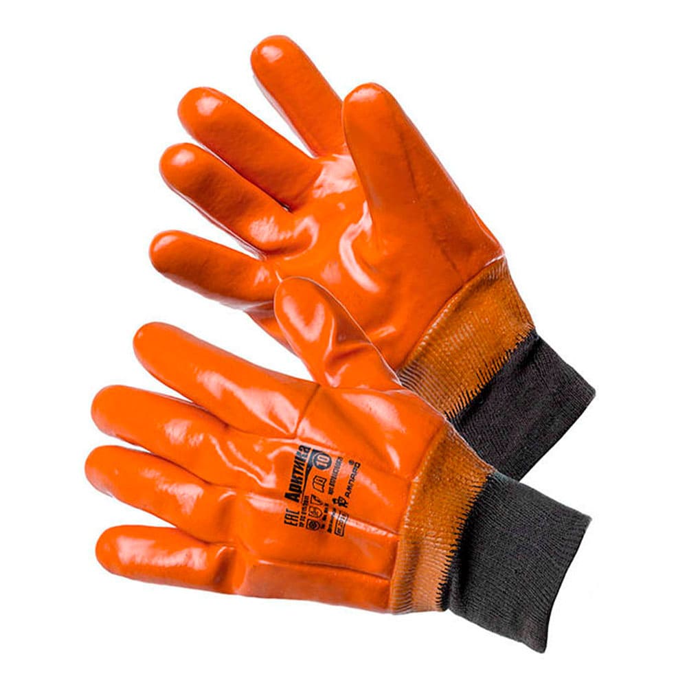 Утепленные прочные перчатки с ПВХ покрытием для защиты от механических воздействий и химических факторов.