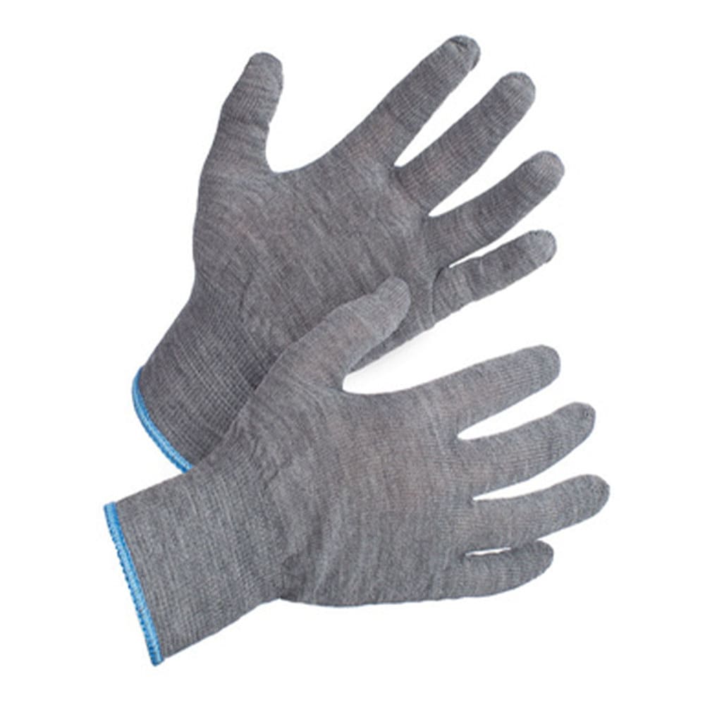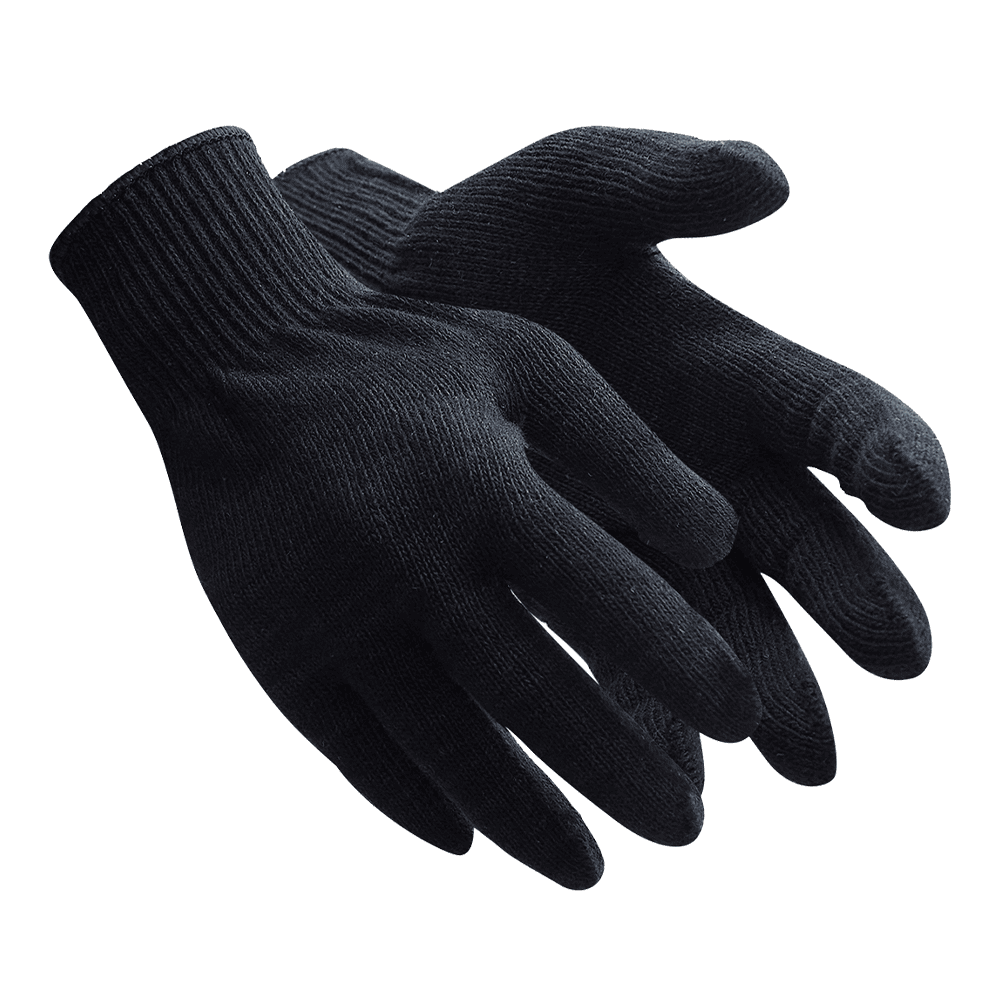 Тонкие трикотажные перчатки из полушерстяной пряжи для защиты от механических воздействий и общих производственных загрязнений.