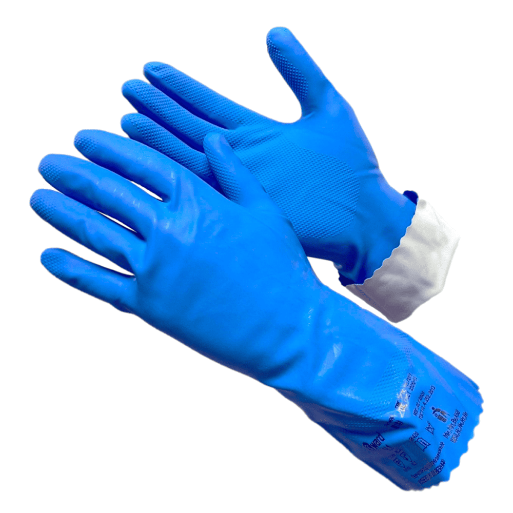 Прочные перчатки из натурального латекса. Специально разработанны для защиты от химии и работы с пищей (обеспечивают отличную защиту от жиров и масел).