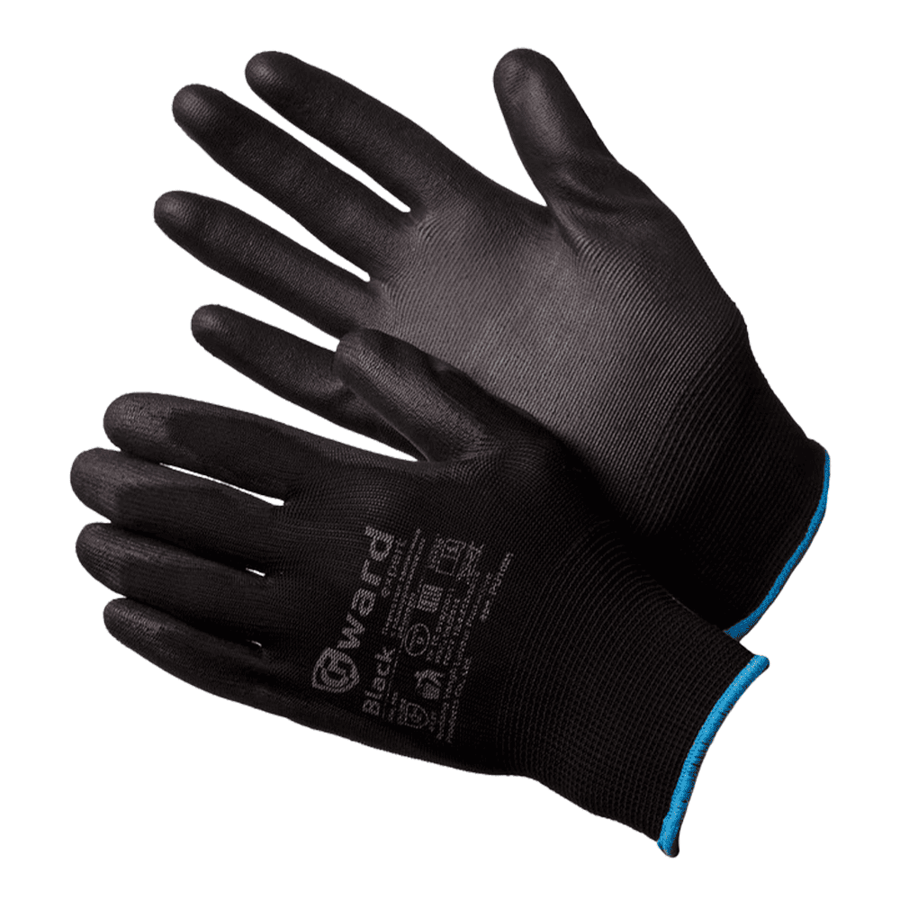 Нейлоновые перчатки черного цвета, покрытые полиуретаном черного цвета. Бесшовная основа 13го класса вязки прекрасно вентилируется и не оставляет ворсинок. Универсальны, применяются для любых механических работ. Тонкое полиуретановое покрытие одновременно очень прочное и чувствительное. Анатомическая форма перчатки снижает усталость рук при работе. Высокие показатели к истирательным и разрывным нагрузкам.