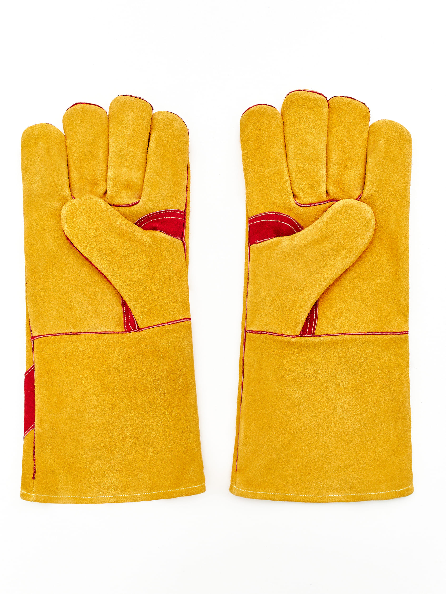 Особопрочные перчатки сварщика (краги) для защиты от механических воздействий, пониженных и повышенных температур из цельного спилка, пятипалые, с подкладкой из специального комфортного искусственого меха желто-золотого цвета длиной 350 мм (+10/-5мм).Спилок КРС специально отобранная спинная часть шкур прошедших предварительный отбор, спилок однородный, сорт В (1,1-1,2 мм). Швы — оригинальная нить Кевлар, усилены вставками из кожи, на ладонной части и большом пальце дополнительный слой из спилка красного цвета.Мех полностью сшит по периметру, для обеспечения наивысшего комфорта при использовании.Краги сварщика обеспечивают высокую механическую защиту, защиту от повышенных температур - открытого пламени, искр и брызг расплавленного металла, от пониженных температур.