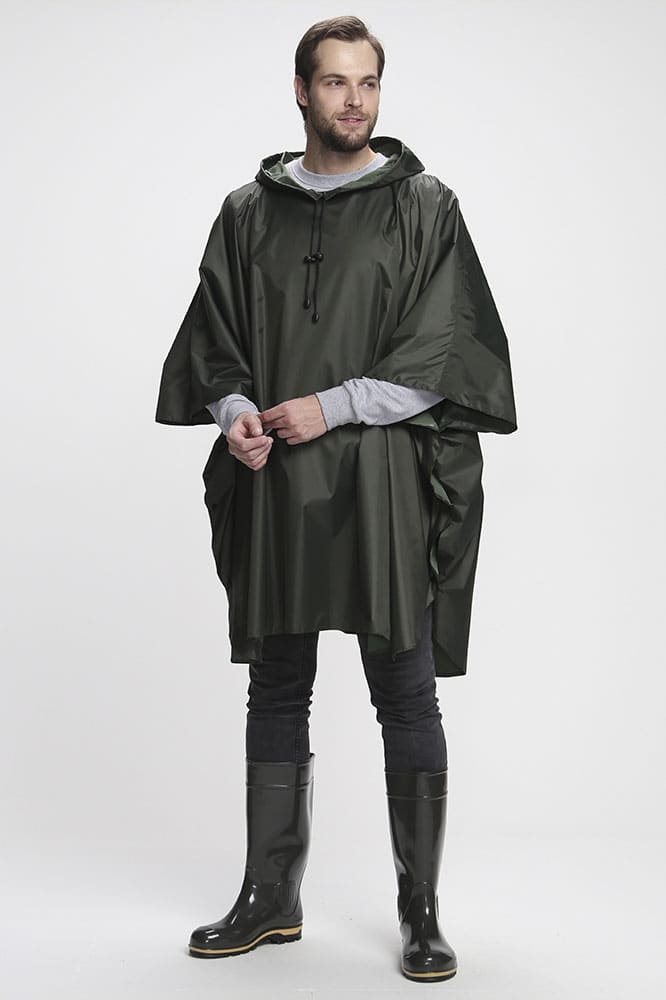 Описание: дождевик имеет втачной капюшон со стойкой,