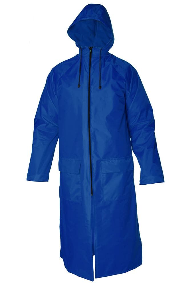 Плащ для защиты от воды с застежкой на молнию с ветрозащитной планкой, имеет капюшон, накладные карманы с влагозащитными клапанами, прошитые и герметично проклеееные швы, манжеты на рукавах. Спинка с кокеткой, отверстиями для вентиляции, закрытыми клапаном. Объем капюшона регулируется по лицевому вырезу шнуром.