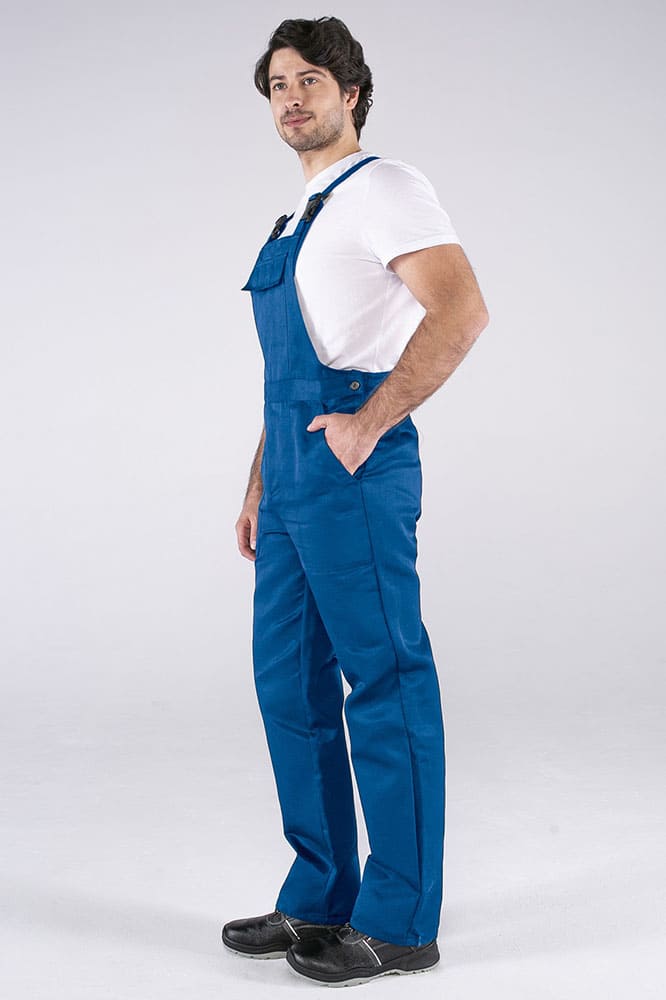 Полукомбинезон мужской рабочий «ИТР» изготовлен в соответствии с ГОСТ для защиты от общих производственных загрязнений и механических воздействий. Благодаря бретелям с регулировкой по длине и кулиске на резинке униформа прямого кроя подходит мужчинам разной комплекции, комфортна в работе, не сковывает движения. На груди полукомбинезона располагается большой закрывающийся на липучку карман, помогающий хранить под рукой все необходимые материалы. Дополнительные карманы по бокам подходят для размещения объемных предметов. Спецодежда застегивается на пуговицы спереди и сбоку, удобно надевается и снимается. Отстрочка в цвет ткани придает форме классический внешний вид и помогает комбинировать полукомбинезон с большинством курток.