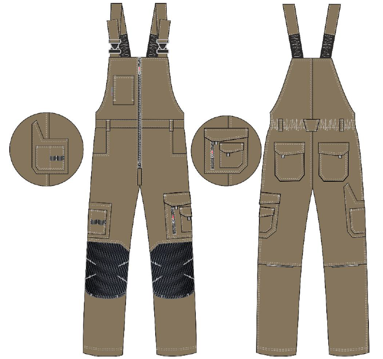 - Усиленные наколенники из материала «оксфорд» с анатомическими вытачками и карманами для вставки ЭВА-вкладышей — максимальная защита и комфорт во время работы