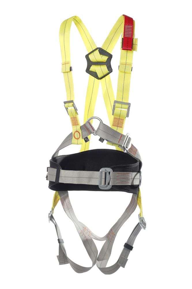 Точка крепления, находящаяся сзади на Х-образных плечевых лямках, регулируется по высоте для правильного расположения и обеспечения максимального уровня безопасности при остановке падения. Данная точка имеет специальный удлинитель для возможности соединения с другими устройствами, в том числе в случае надевания привязи под спецодежду.