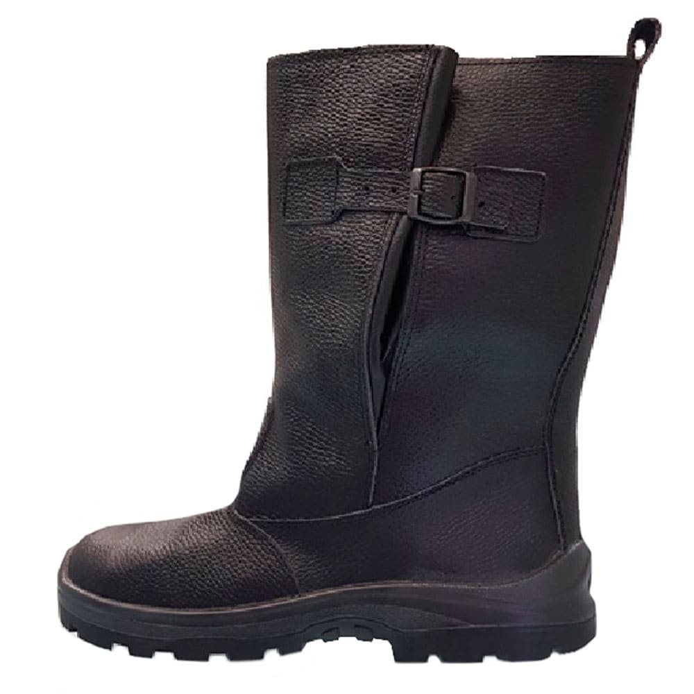 Кожаные утеплённые сапоги с защитным металлическим подноском, защита носочной части от ударов энергией до 200 Дж. Сапоги имеют: регулируемое голенище; мягкую прокладку под подноском; профильную подошву, препятствующую скольжению; подкладка и стелька выполнены из искусственного меха. Натуральная водостойкая кожа КРС толщиной 1,8 мм. Клапан из искусственной кожи.