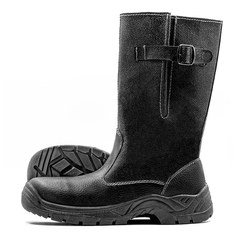 Сапоги изготовлены из юфть-кирзы обладающей высокими защитными качествами. Подошва изготовлена литьевым методом, что делает обувь водонепроницаемой. Она устойчива к воздействию кислотно-щелочных веществ (до 20%), масло-бензольных соединений и нефтепродуктов. Рабочая температура эксплуатации сапог от -35°С до +85°С. Голенище регулируется по ширине. Амортизатор в пяточной части сапога обеспечивает дополнительный комфорт для ног. Анатомическая стелька из ЭВА обеспечивает комфорт носки и снижает нагрузку на суставы ног. На однослойно ПУ(полиуретановой) подошве литьевог методкрепления, голенище-кирза, высота сапога 28 см,