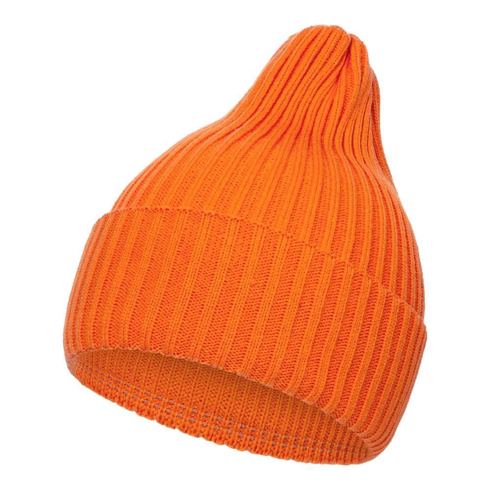 Однослойная шапка фактурной вязки с двойным отворотом.