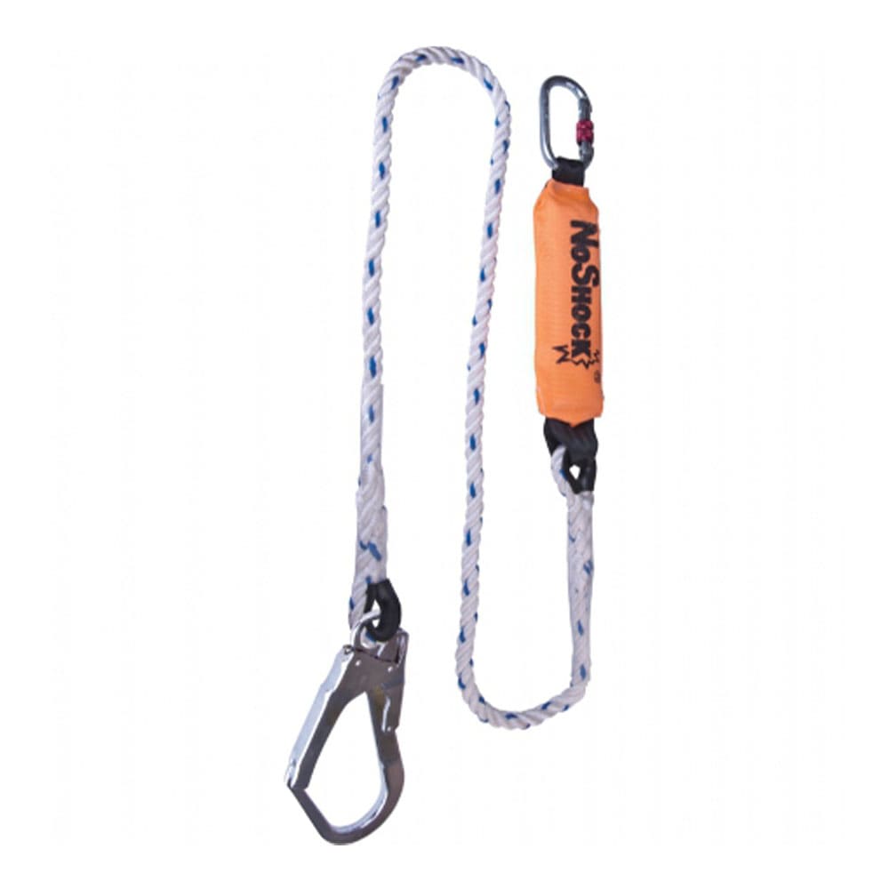 Строп одинарный канатный с амортизатором и соединителями. Материал: строп - полиамидный плетеный канат диаметром 12 мм, амортизатор – полиэстер, карабины – сталь. Длина стропа - 2,0 м. Петлевые наконечники. В комплектацию входят 2 соединителя: 1 карабин резьбовой АМ002 и 1 карабин-крюк АМ022.