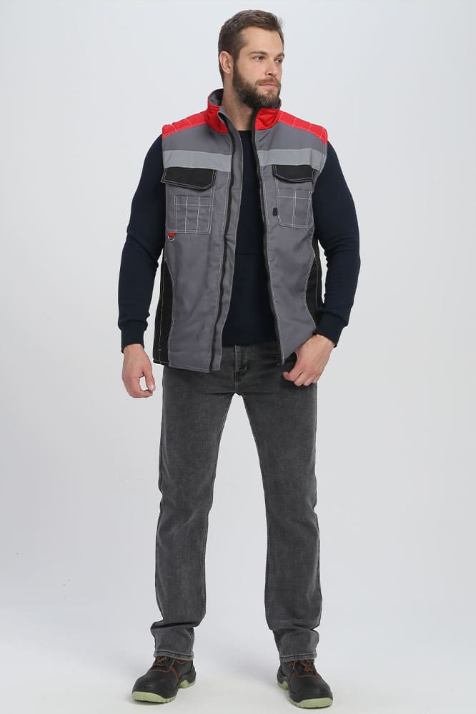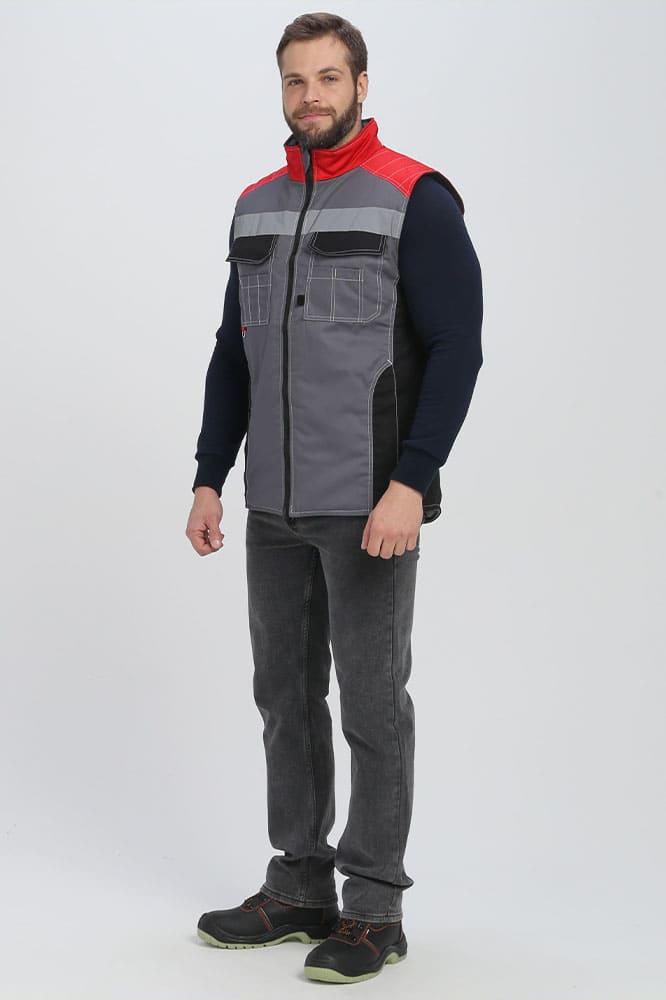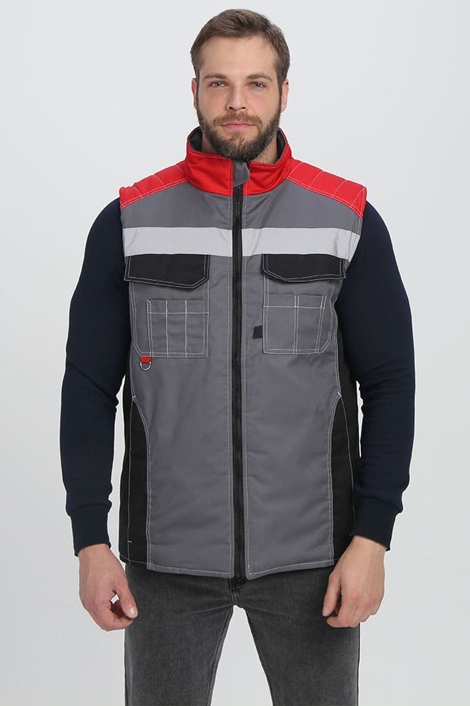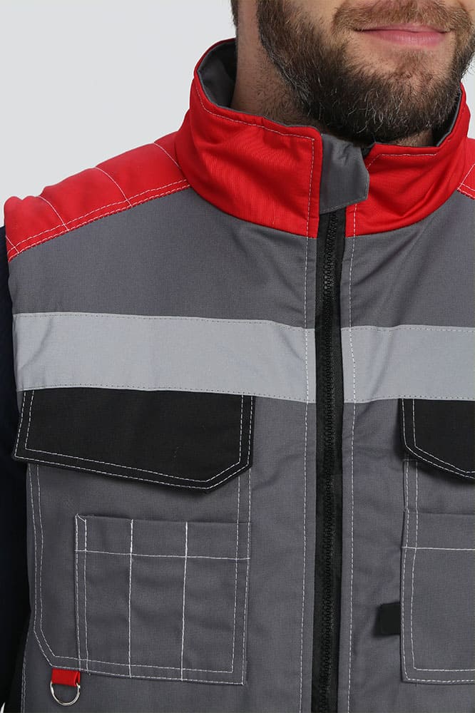 Жилет утепленный Формула (тк.Смесовая,240), серый/черный/красный