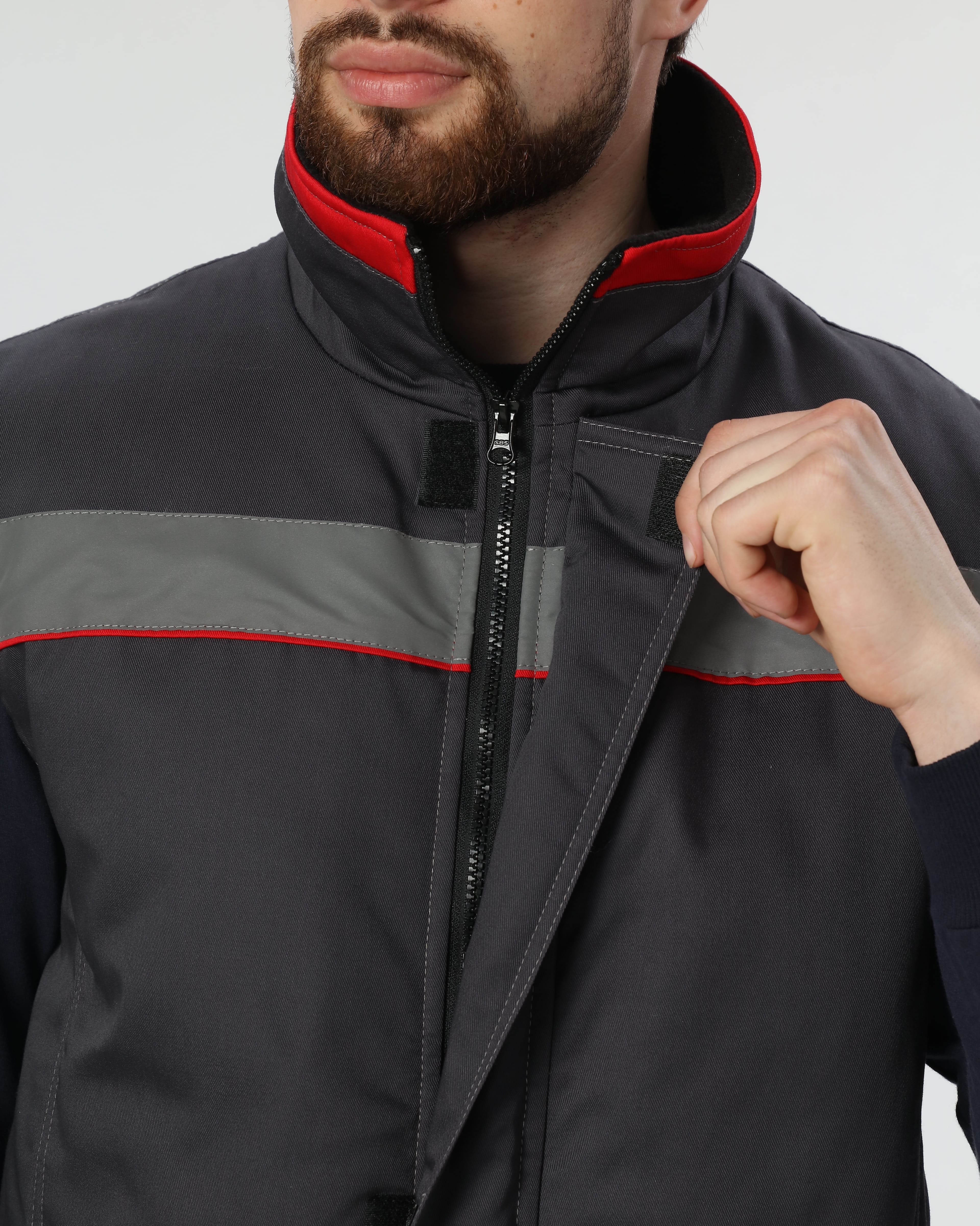 Центральная застежка на прочную молнию с внешним ветрозащитным клапаном, фиксирующимся на кнопки.