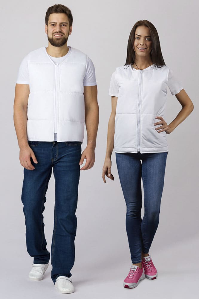 Жилет белый «Комфорт» отличается стильным внешним видом, удобным кроем и отличным качеством материалов. Базовый стеганый жилет является универсальным и подходит как женщинам, так и мужчинам. Классический утепленный жилет относится к базовым элементам гардероба, выступая модным аксессуаром на прогулках или в рабочей деятельности. Благодаря плотной ткани с влагоотталкивающей пропиткой жилетка надежно защищает от осадков и отличается износостойкостью. Утеплитель синтепон помогает сохранить тепло, а удлиненная спинка спасает от переохлаждения поясничный отдел. Теплый жилет может сочетаться с большинством предметов гардероба: джинсами, шортами, спортивными или рабочими брюками. Горловина с U-образным вырезом помогает надевать под жилет модные худи или другую одежду с капюшоном. Безрукавка дополняется удобным внутренним карманом для хранения важных мелочей и записей.