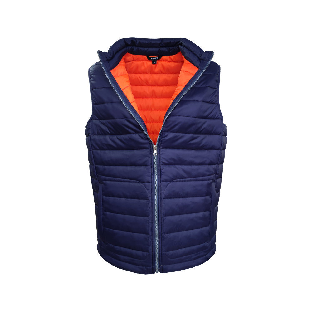Жилет утепленный арт. J-01. выполнен в классическом фасоне из высококачественных материалов. Утепленный стеганый жилет прямого кроя подходит как мужчинам, так и женщинам. Центральная застежка - тесьма «молния». На модели расположены карманы в листочку, закрывающиеся на тесьму на тесьму «молния». В жилете арт. J-01 воротник-стойка, окантовка проймы сделана из вязаной эластичной резинки. Подкладка выполнена контрастным оранжевым цветом.