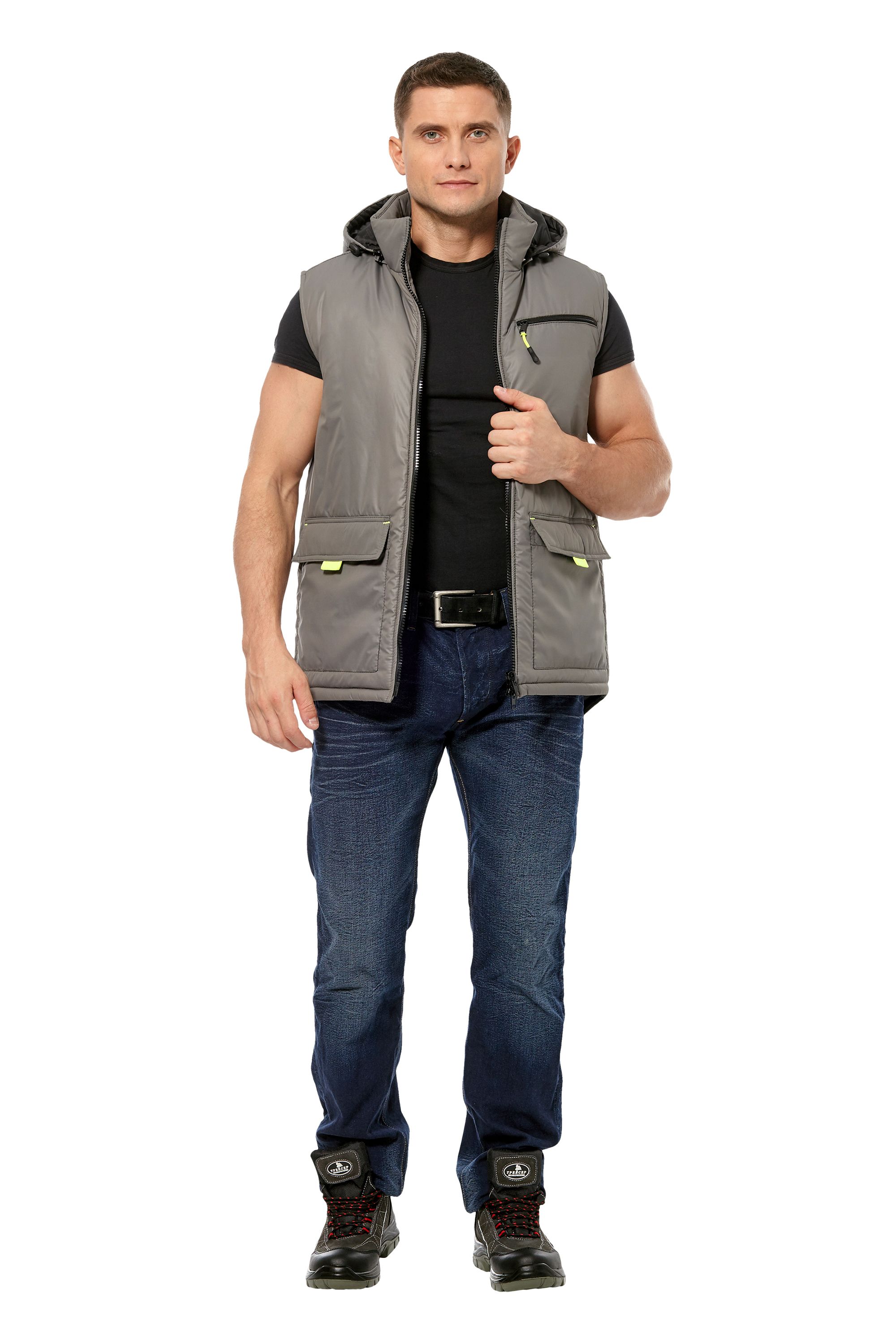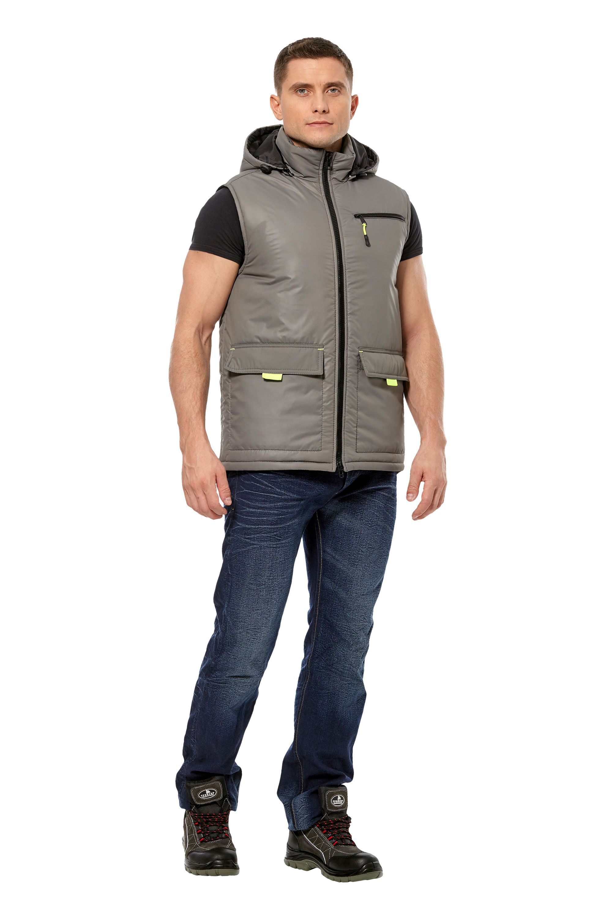 Жилет утепленный прямого силуэта. Может использоваться летом, в межсезонье и зимой.