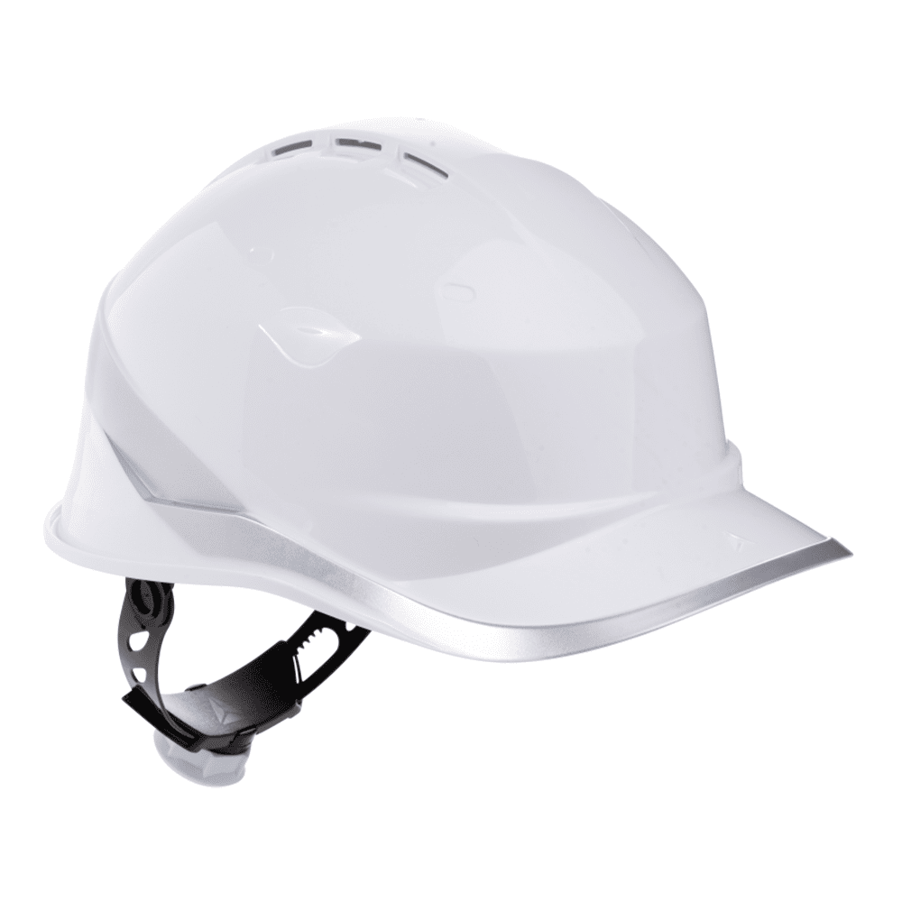 Защитная каска с вентиляцией из термопластика АБС в виде бейсболки с козырьком. Внутренняя оснастка из полиамида: 3 текстильных ремня с 8 точками крепления. Потовпитывающая вставка на лобовой части оголовья. Карманы для крепления очков, наушников, щитков. Регулируется по обхвату головы от 53 до 64 см при помощи системы затяжения ROTOR®. 2 возможных позиции размещения на голове: высокая и низкая. Защита против бокового сжатия. Стойкость к брызгам расплавленного металла.