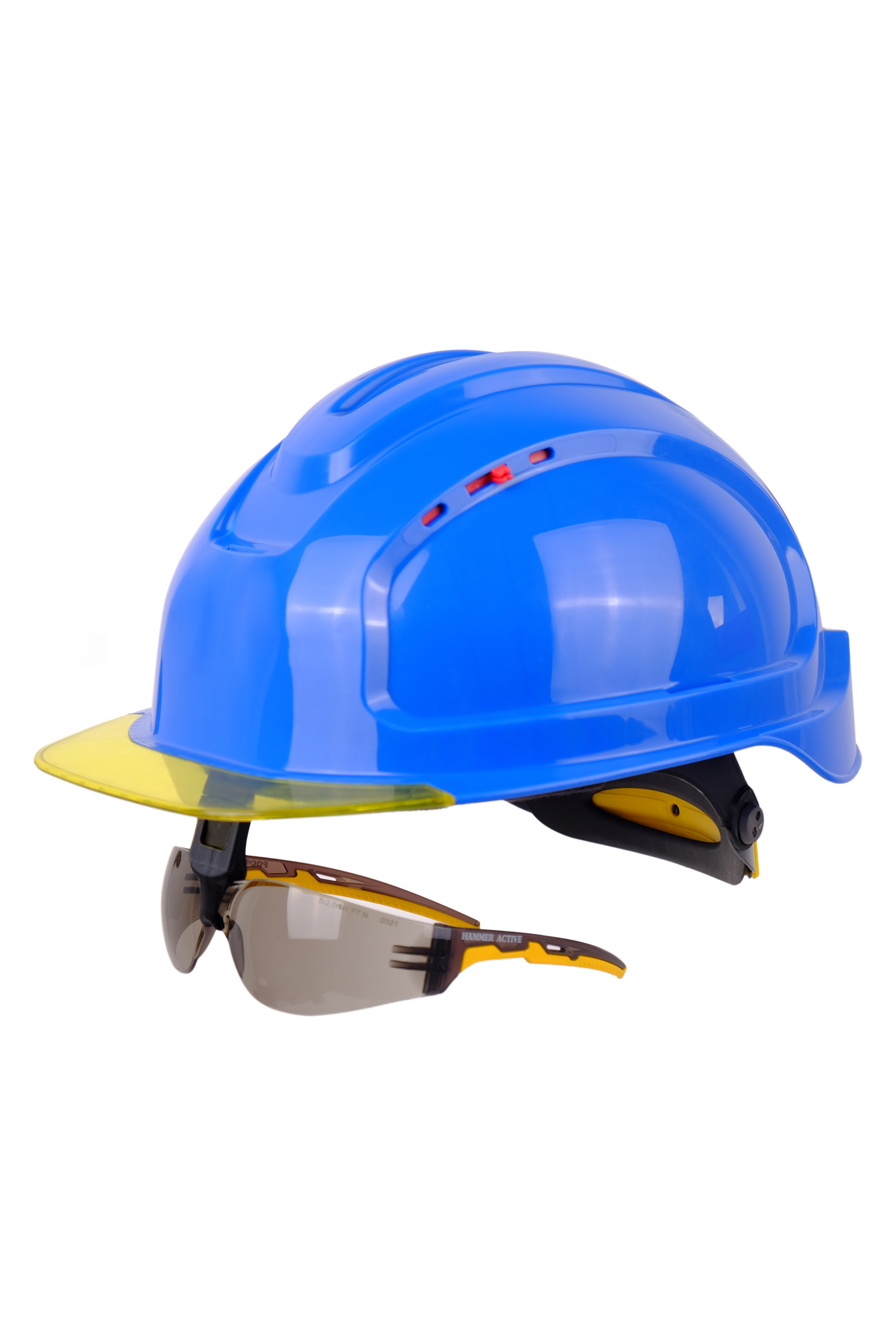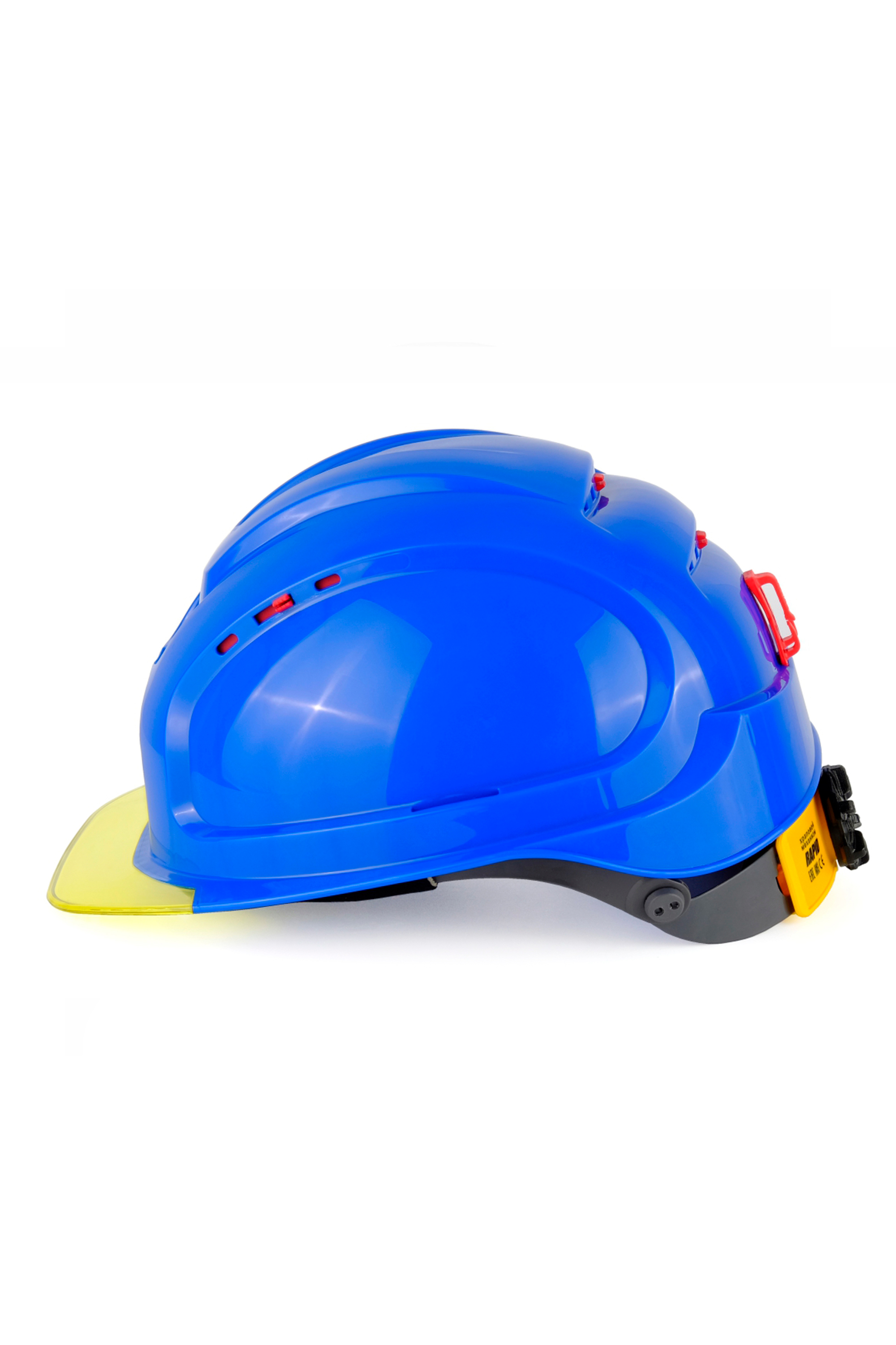 Особенностью каски является желтый (янтарный) козырёк, который повышает контрастность, если нужно контролировать верхнюю рабочую зону в помещении с плохим освещением или при плохой видимости на промышленных площадках, в тоннелях. Козырек выполнен из прозрачного поликарбоната желтого цвета, на козырьке каски нанесена несмываемая маркировка с защитными свойствами.