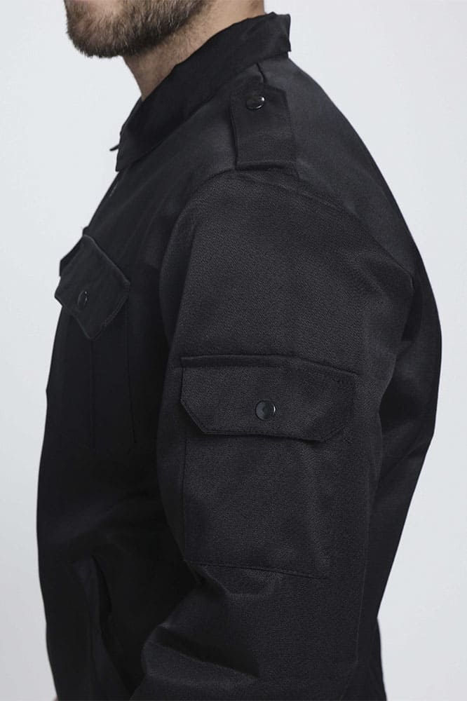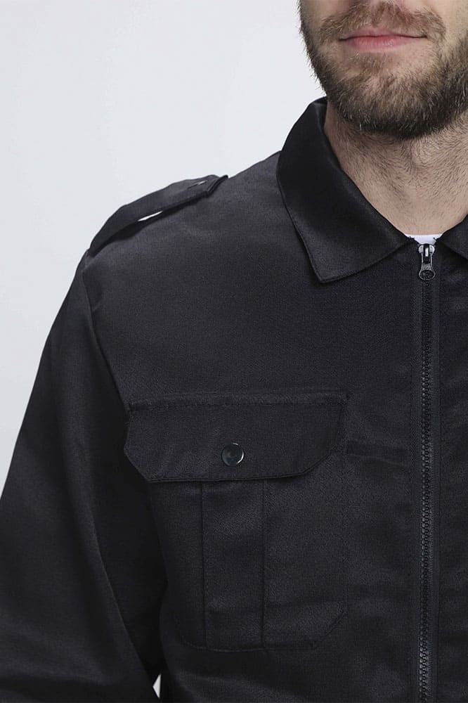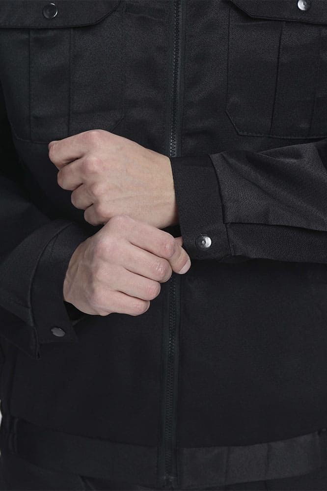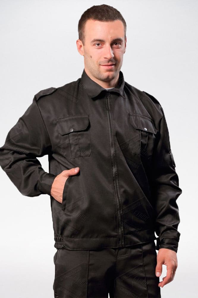 - укороченная с притачным поясом, центральная бортовая застежка на тесьму «молнию», отложной воротник, с погонами, застегивающимися на кнопки. Накладные нагрудные карманы с фигурными клапанами, боковые прорезные карманы с листочкой. Пояс по боковым швам стянут эластичной тесьмой. Рукава с манжетами, застегивающимися на кнопки. По низу рукава заложены две складки. На левом рукаве накладной кармана с фигурным клапаном.