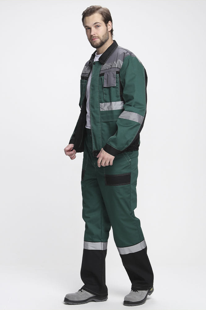- по кокеткам, полочкам, спинке, рукавам и брючинам расположены световозвращающие полосы, что позволяет использовать костюм в условиях плохой видимости