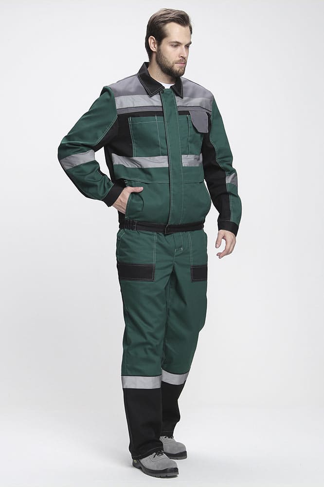 - по кокеткам, полочкам, спинке, рукавам и брючинам расположены световозвращающие полосы, что позволяет использовать костюм в условиях плохой видимости