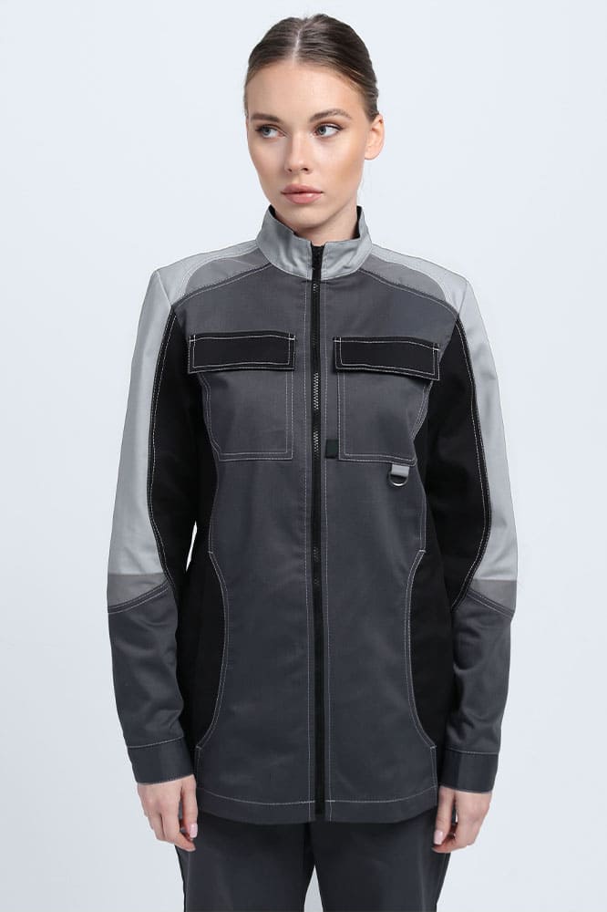 светоотражающая полоса 50 мм по кокеткам полочек и спинки, по рукавам