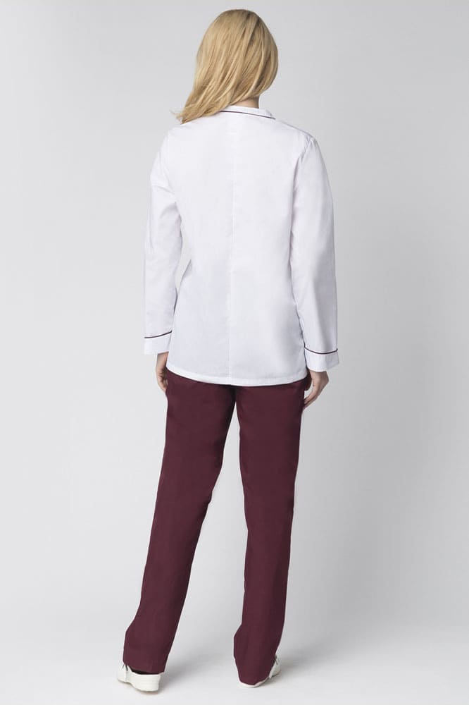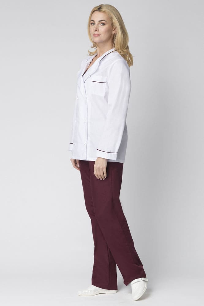 - отделка контрастным кантом бордового цвета манжет, кармана и воротника