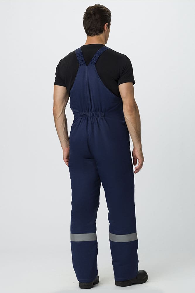 на правую заднюю часть полукомбинезона настрочен накладной карман со скошенными углами